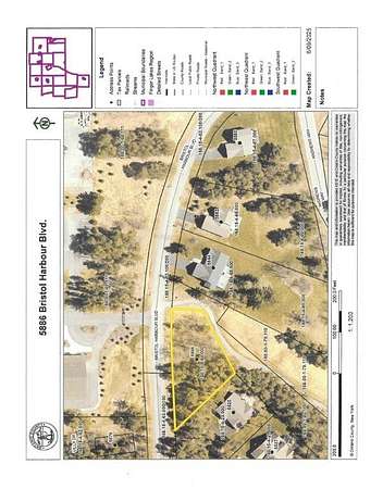 Build your dream home in the Bristol Harbour Village community. On of the last few building lots without floor plan restrictions. Enjoy low maintenance living on this scenic lot, plus Bristol Harbour Village Amenities: community center, tennis, pickleball, basketball courts, fitness center, library, playground, 250' of sandy private beach with kayaks, loungers, picnic tables and fire pit. In the heart of the Finger Lakes close to wineries, Bristol Mountain ski resort, hiking, parks, golf courses, restaurants and shopping. HOA fee 1/4th of current BHVA fee until a home is constructed -- currently $72.50 (1/4th of $290/month). Then water and sewer fees also apply. Minimum size home is 1600 sq. ft. BHVA Environmental Committee Guidelines are posted on the Rules and Regulations tab.