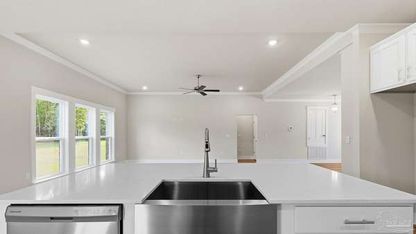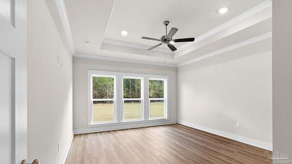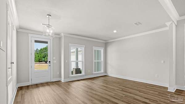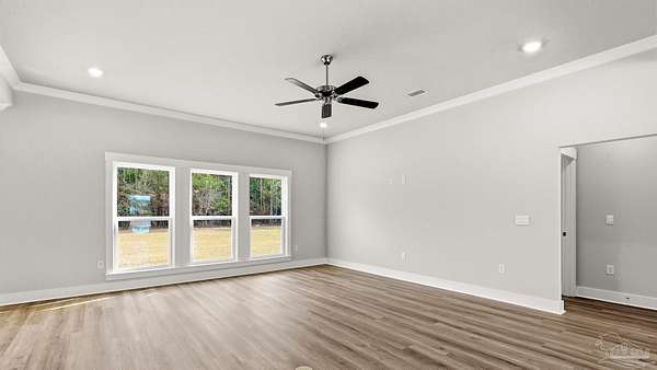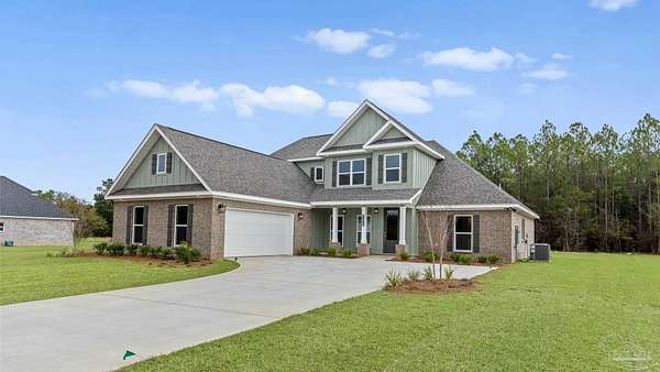 Welcome to 5888 Greenfield St! The Walnut plan is a stunning 2-story home offering 4 bedrooms, 3 bathrooms, and a 2-car garage, perfectly situated on a spacious 2-acre lot in one of Pace's most desirable and quiet locations. The open-concept kitchen is a dream with quartz countertops, beautiful cabinetry, soft-close drawers, tile backsplash, a large island, and walk-in pantry. The primary suite is a true retreat, featuring tray ceilings, a luxurious tiled walk-in shower, dual vanity, and a spacious walk-in closet. EVP flooring flows seamlessly through the main living areas and primary bedroom, while thoughtful touches like a built-in mud bench add both function and style. With its combination of elegance, functionality, and acreage, this home offers the best of Pace living-peaceful surroundings with easy access to shopping, schools, and all the conveniences nearby.
