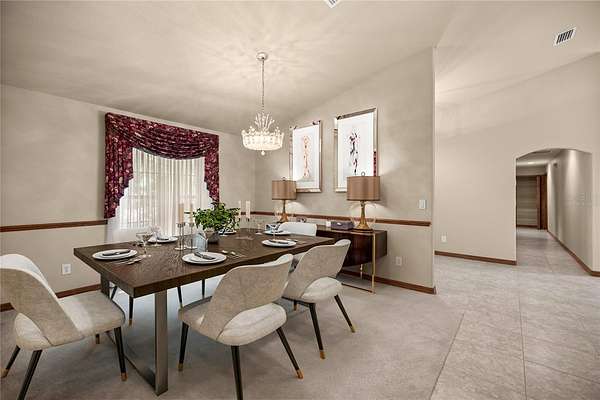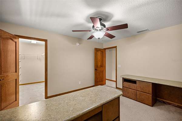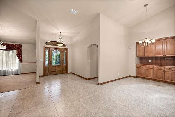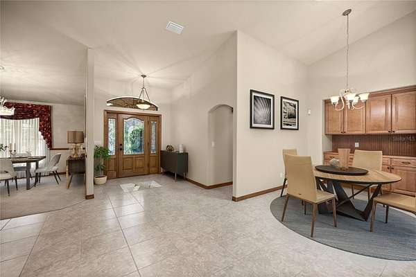 - Built-In Features, Cathedral Ceiling(s), Ceiling Fans(s), Chair Rail, Dry Bar, Eat-In Kitchen, High Ceilings, In Wall Pest System, Open Floorplan, Pest Guard System, Primary Bedroom Main Floor, Split Bedroom, Stone Counters, Thermostat, Walk-In Closet(s)