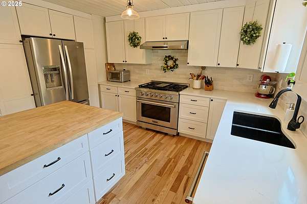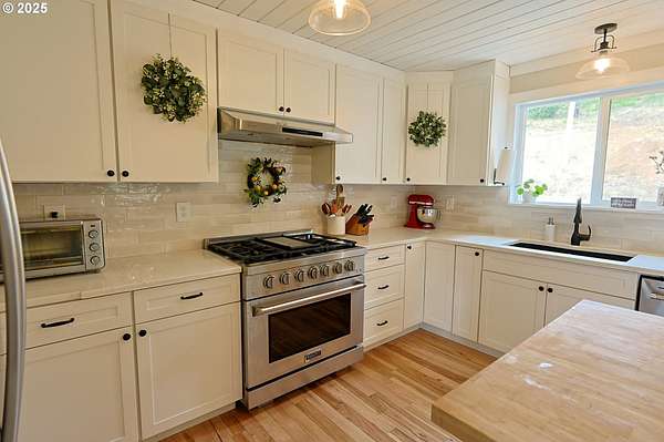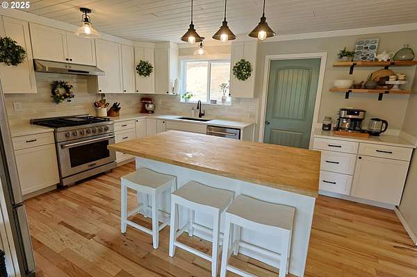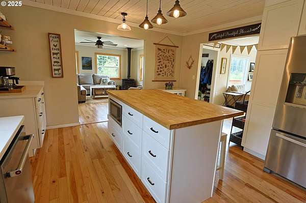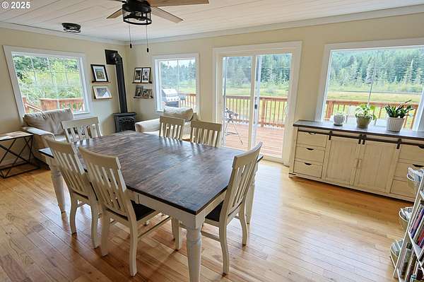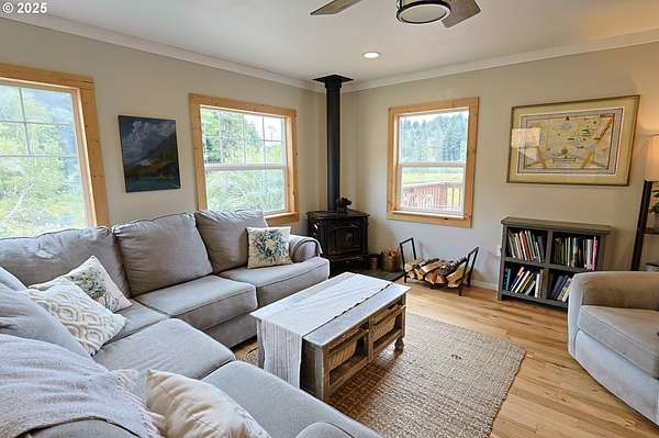 Completely remodeled home on 110 acres across two tax lots. Recent updates include new flooring, paint, windows, cabinetry, bathrooms, and a brand-new kitchen. The main residence offers 4 large bedrooms, 2.5 bathrooms, and cozy wood stove heat.The property is designed for both function and flexibility: a barn, greenhouse, and outdoor riding arena are already in place. A private well supplies the home, with additional natural springs on the land-valuable for gardening, livestock, or future uses. Approximately 25+ acres of pasture provide open ground, while 70 acres of higher timberland add privacy, protection, and room to roam. A second residence sits on the property (not currently habitable), opening possibilities for storage, future renovation, or multi-use needs.This is a rare opportunity to own an updated home with acreage, resources, and room to live more independently.