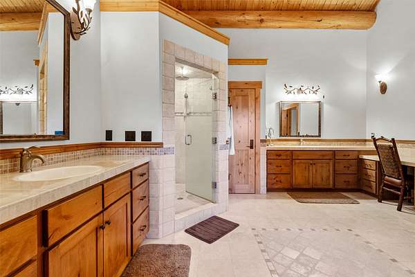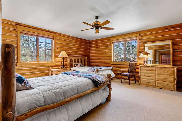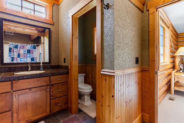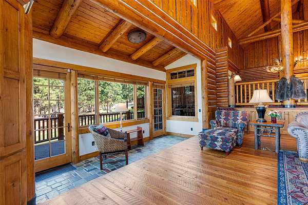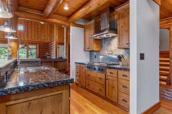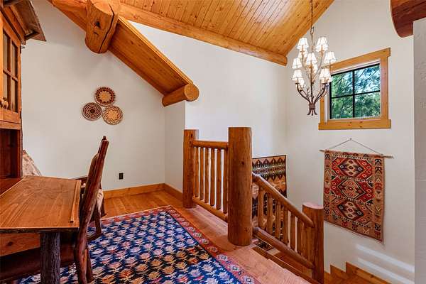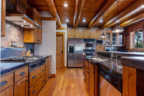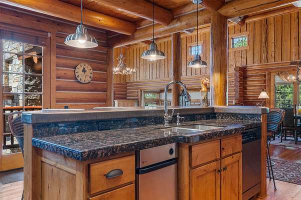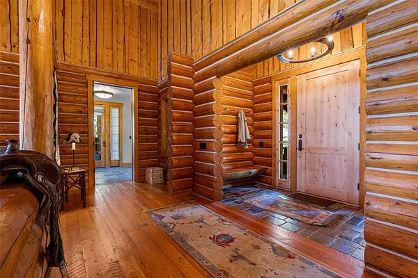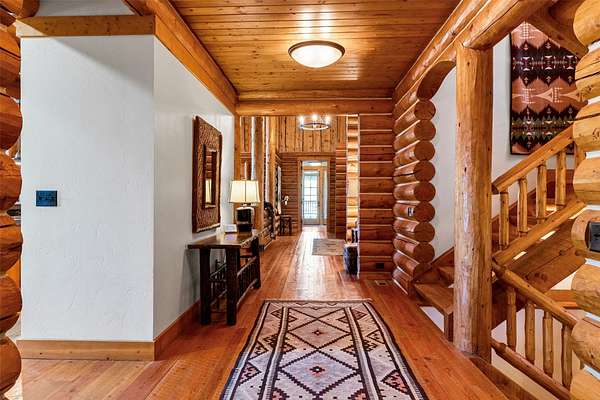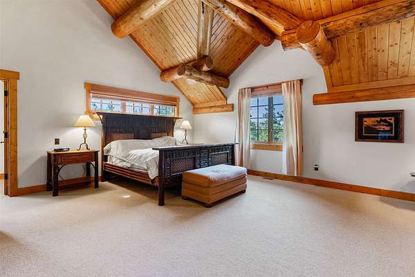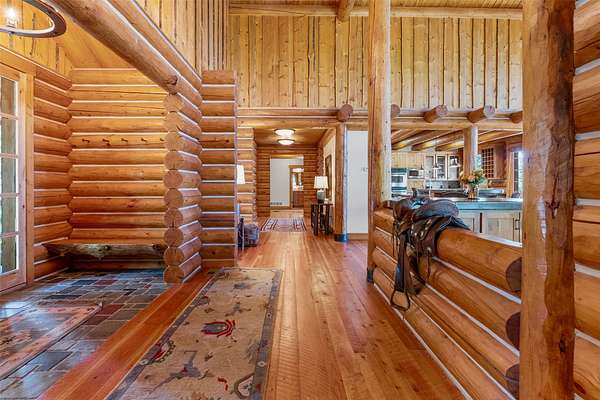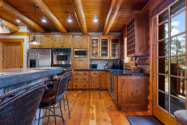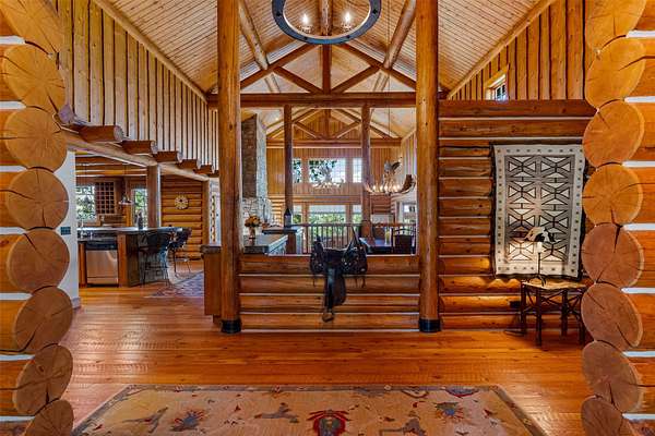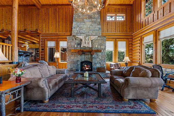 Incredible, custom Rocky Mountain log homes on 4.06 acres in 2 parcels, featuring just over 6600 ft.2 ; of living area featuring an open floor plan and massive living room with a huge stone double sided fireplace and incredible views looking out the floor to ceiling windows to the Como Peaks and Bitterroot Mountain Range. The large custom kitchen is fit for the finest chefs with high-end appliances and granite countertops. This home is offered furnished and features 4 bedrooms and 4 1/2 bathrooms with an attached two car garage. There are numerous outdoor entertaining areas looking out at the views and beautiful landscaping. This property is located at the end of the Mascot Trail. All of this is located in the incredible gated Stock Farm Club with access to a world class Tom Fazio golf course as well as an equestrian center, shooting range and an amazing clubhouse with world class dining. Membership is not included with this home but buyers can apply for membership. Please contact listing agent regarding amenities and contact information for membership.