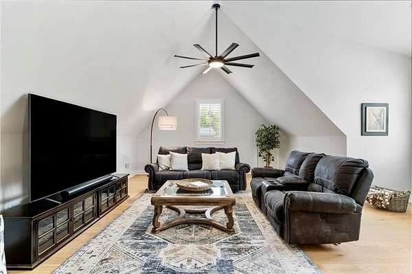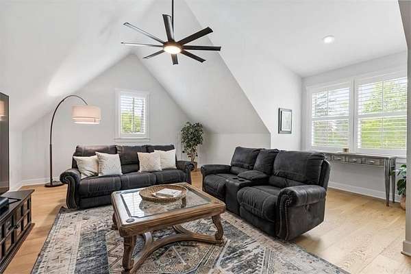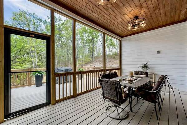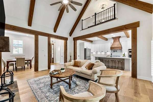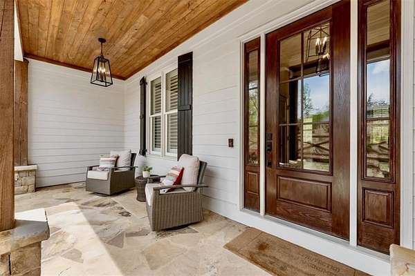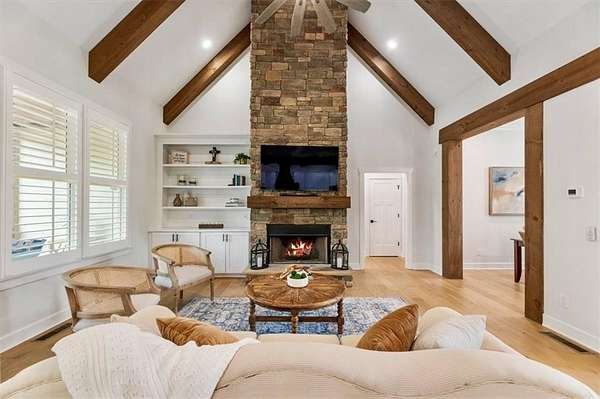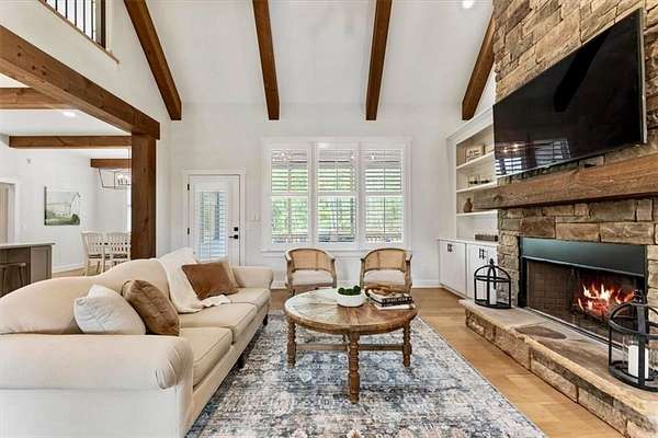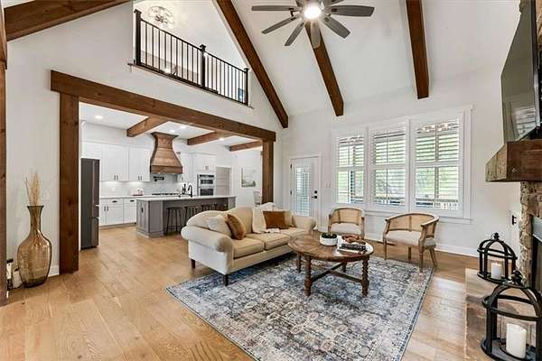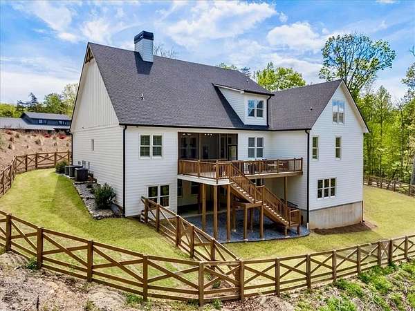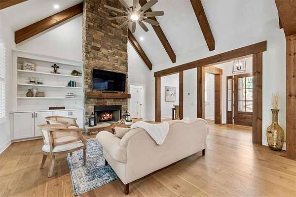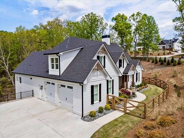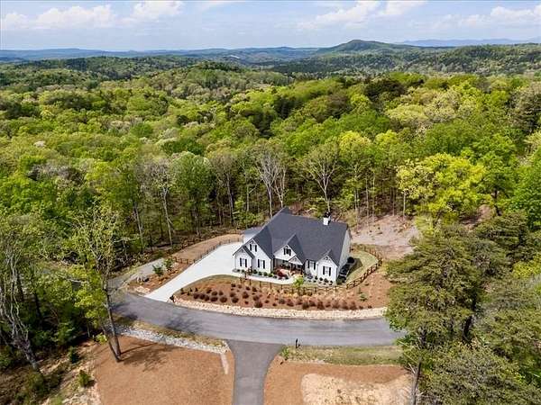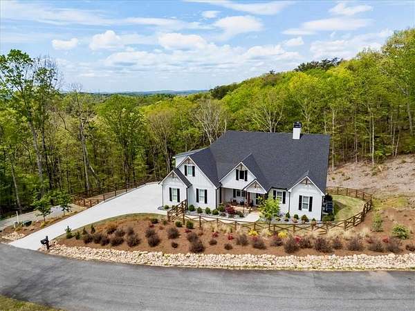 Stunning Custom-Built Farmhouse in Talking Rock! Located in Fisher Creek Estates, this custom-crafted 2023 residence features 4 bedrooms, 3.5 baths, and 6,000 sq ft on a picturesque 3.01-acre mountain sanctuary. An extraordinary $125,000 exterior investment transformed the grounds into a rare, perfectly level retreat. Extensive grading, picturesque split-rail fencing, and architectural lighting complement the screened-in porch-with a stained wood-plank ceiling-and Trex decking, creating the ultimate setting to capture the magnificent sunset views. Inside, the open-concept main level, bathed in brilliant natural light, showcases gleaming hardwoods, plantation shutters, and artisanal rustic beams. The gourmet kitchen-featuring a large island, custom wood range hood, walk-in pantry, and breakfast room-flows seamlessly into a spectacular 2-story great room with soaring 25-foot vaulted ceilings, custom built-ins, and a floor-to-ceiling stone masonry fireplace. The secluded master-on-main retreat offers a luxurious bath, large custom closet, and direct laundry access. The main level further provides two guest bedrooms, a half-bath, a mudroom, and an oversized garage with an extra-wide driveway designed for large vehicles. Upstairs affords a spectacular loft overlooking the great room, a home theater room, a massive ensuite bedroom, and an office alcove. The climate-controlled daylight-walkout basement is studded, plumbed, and features premium spray-foam insulation. This truly better-than-new property, offering breathtaking sunsets and located just minutes from downtown Jasper, Fainting Goat, and Chateau Meichtry wineries, presents the perfect Georgia Mountains lifestyle.