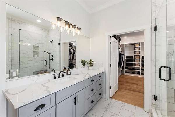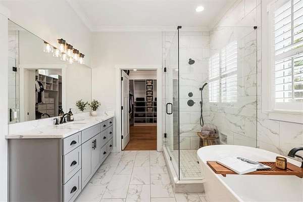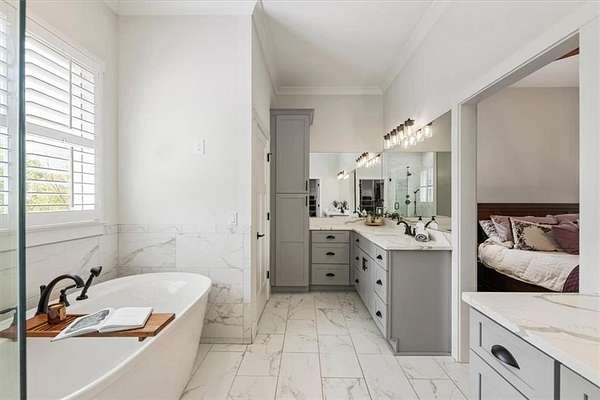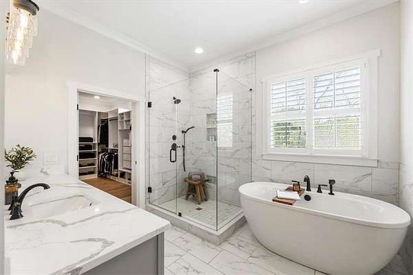- Beamed Ceilings, Cathedral Ceiling(s), Crown Molding, Double Vanity, Entrance Foyer, High Ceilings 10 ft Lower, High Ceilings 10 ft Main, High Ceilings 10 ft Upper, Recessed Lighting, Vaulted Ceiling(s), Walk-In Closet(s)
