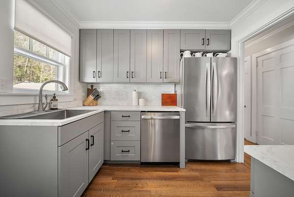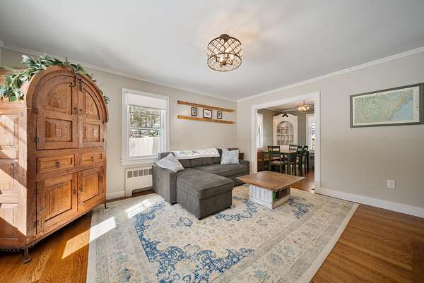 Welcome to this beautifully maintained 1940s Cape—loved by the same family for generations and now ready for its next chapter. Rich with character and craftsmanship, this home showcases multiple species of hardwood flooring, original built-ins, and the solid construction that “Tuttle-built” homes are locally known for. Inside, you’ll find an impressively flexible floor plan offering 4–5 bedrooms (with two on the first floor) and two baths, perfect for multigenerational living, work-from-home options, or simply room to spread out. The surprisingly generous ceiling height on the main floor enhances the sense of space, a rare treat in homes of this era. The updated kitchen features modern cabinetry, stainless steel appliances, and efficient workflow—all thoughtfully integrated to preserve the home’s charm. Formal living and dining rooms anchor the main level, while the upstairs offers additional bedrooms or bonus spaces to tailor to your needs. Recent major improvements include updated four bedroom replacement septic system, fresh exterior paint, a newer roof, a 200-amp electrical panel, and renovated bathrooms, giving you peace of mind for years to come. Outside, the mostly level lot includes plenty of parking and a detached garage with power plus an attached storage shed. A fenced private area offers space for pets, gardening, or quiet outdoor enjoyment. If you’re looking for a home with history, warmth, and versatility—plus modern upgrades where it counts—this Wilton gem is ready to welcome you home. Closing subject to sellers securing housing, and showings begin at the open house Saturday March 14 at ten am.