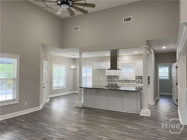 - Breakfast Area, Breakfast Bar, Built-In Features, Ceiling Fan(s), Entrance Foyer, Gourmet Kitchen, High Ceilings, Kitchen Island, Main Level Primary, Pantry, Recessed Lighting, Tray Ceiling(s)