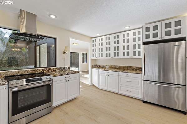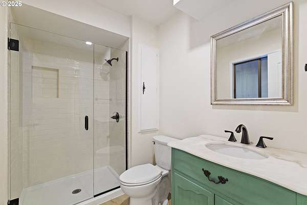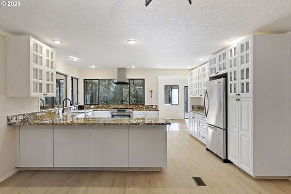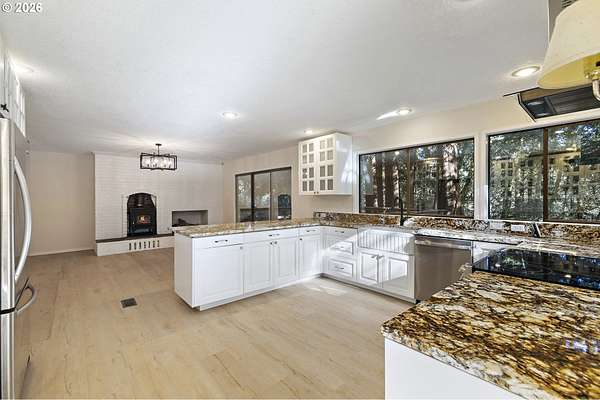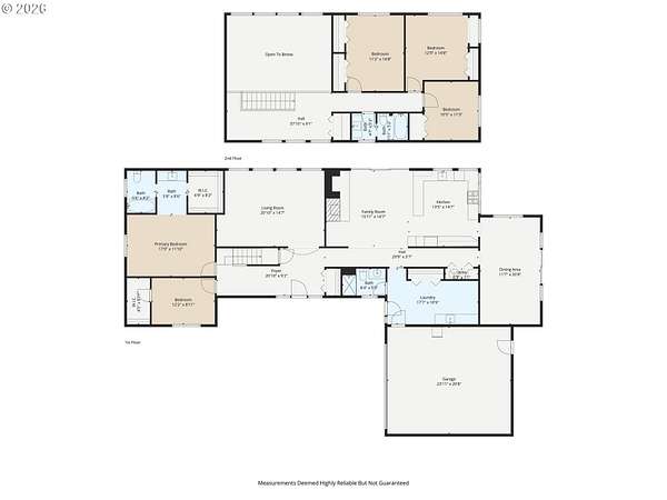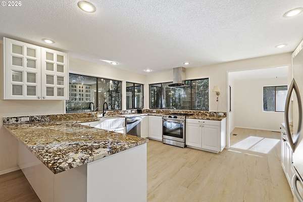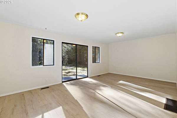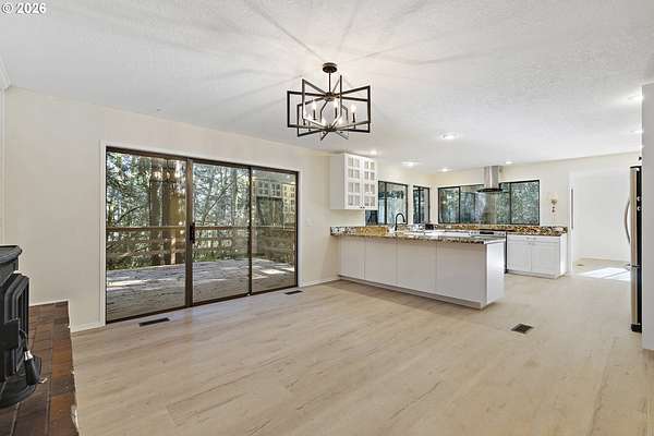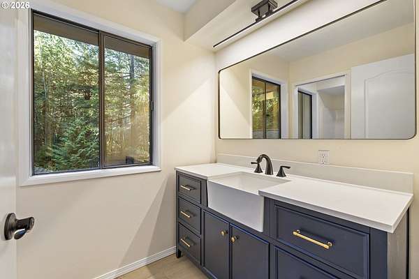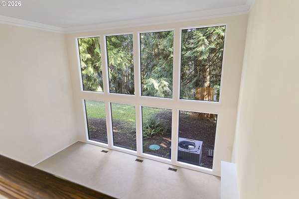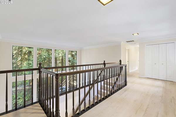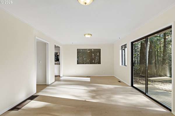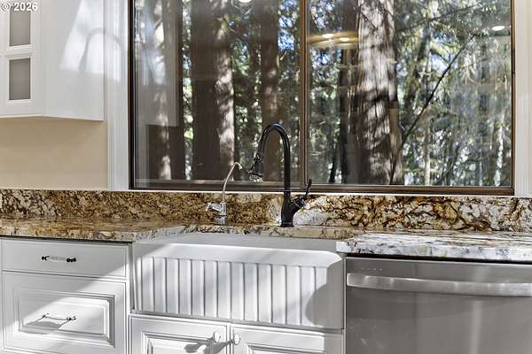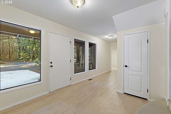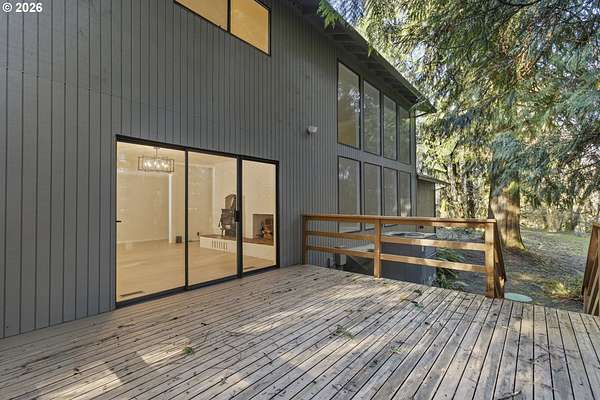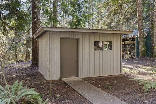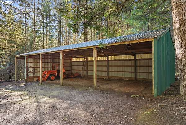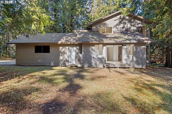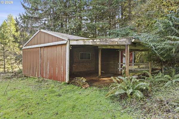 Tucked away on nearly 7 acres of serene, forested privacy, this spacious property offers the perfect blend of comfort, functionality, and natural beauty. Surrounded by mature trees and peaceful views in every direction, the home is filled with windows that frame the landscape and invite abundant natural light throughout. The spacious kitchen features granite countertops, stainless steel appliances, laminate flooring, and generous prep and storage space-ideal for everyday living and entertaining. A nearby laundry room with full sink and full bath adds everyday convenience. Sliding doors from both the living room and kitchen provide easy access to the back deck and expansive yard, creating seamless indoor-outdoor living. The impressive family room showcases soaring ceilings, floor-to-ceiling windows, and a fireplace, making it a stunning gathering space. Two bedrooms are located on the main level, including the primary suite, offering flexible single-level living. Upstairs, a banister overlooks the family room below and leads to three additional spacious bedrooms and a full bath, providing plenty of room for guests, work-from-home needs, or hobbies. Outside, the property truly shines with a large two-car garage, RV parking with covered storage, a barn, and a shed-perfect for equipment, animals, recreational toys, or workshop space. With open areas that provide space for a pasture to host livestock and animals, this property offers incredible potential for hobby farming or country living. Enjoy the peace, privacy, and endless possibilities this exceptional acreage offers, all while remaining within reach of everyday amenities. Easy access to the Banks Vernonia Linear Trail just across the road.