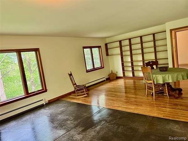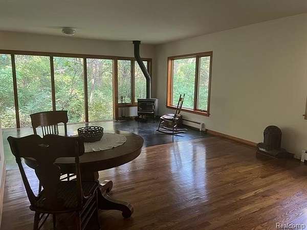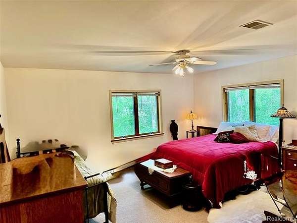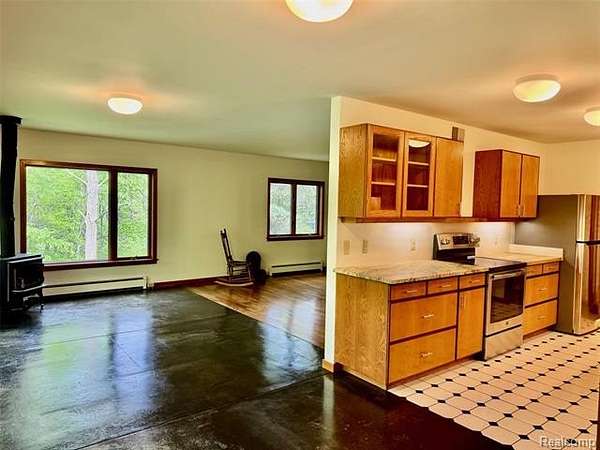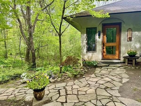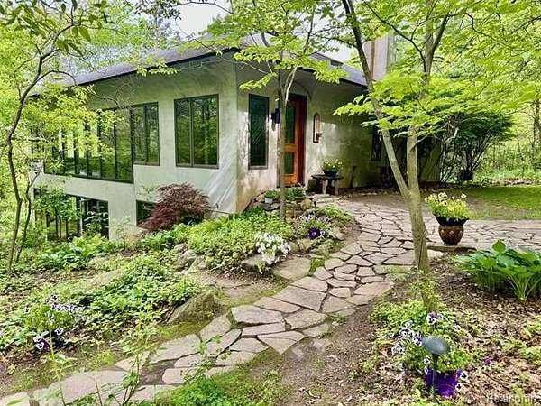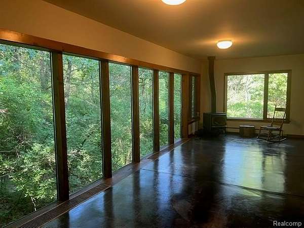 Price adjusted! A natural beauty road and not merely a home, but a sanctuary nestled in the Heart of Metamora Hunt Country. This masterpiece is a testament to the seamless blend of innovation & artistry. Since the 1950s, this 80-acre family-owned parcel has been a cherished legacy & within it, a 10-acre canvas was chosen to craft a dream. The architecture, a meticulously designed European-style raised ranch, harmonizes effortlessly w/the forest, marsh & unique topography of this extraordinary land. Private drive winds through the woods, past vibrant perennials, flowering trees & cleared flatland perfect for garage/horse pasture, culminating at the residence. Embracing the power of nature, this home features black concrete flooring, 7/8 cement stucco exterior & 3' roof overhang, creating a passive solar system that captures the sun warmth in winter while shielding the interior in summer. Artistic elements abound, including high-end solid wood exterior doors, stained glass windows & European-inspired bathroom doors enhanced w/opaque glass. The centrally located galley kitchen, where form meets function, boasts new SS appliances, granite & butcher block countertops, handmade cabinets in ash & mahogany. The upper level is a symphony of light, w/expansive windows that invite the outside in. It features wood, cement, carpeting & ceramic tile flooring, built-in bookcase & 2 spacious bedrms w/renovated bath. The lower level, adorned w/floor-to-ceiling windows, offers another perspective of nature. It provides a large family room, bedrm & new bathroom, offering ample space for creativity & connection. It includes 2 add'l areas, possibly a 4th bedrm, office/activity room. This minimalist design is the ideal canvas for your imagination. The location benefits from moderate Lapeer Co. taxes in the exceptional Oxford school district & conveniently located 15 minutes from Oxford/Metamora. Secluded nature at its finest, a place where innovation & nature coexist in perfect harmony.