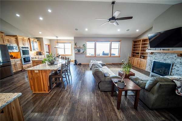 Welcome to this stunning walk-out rambler set on over 2 beautifully maintained acres in Rochester, Minnesota. Offering approximately 3,600 finished square feet, this fully finished 6-bedroom, 4-bath home showcases top-of-the-line finishes, exceptional space, and a layout designed for both everyday comfort and effortless entertaining.