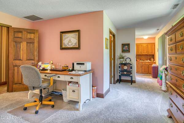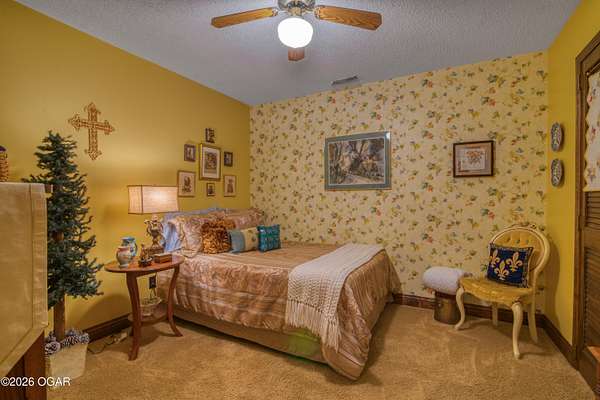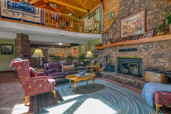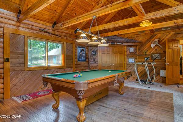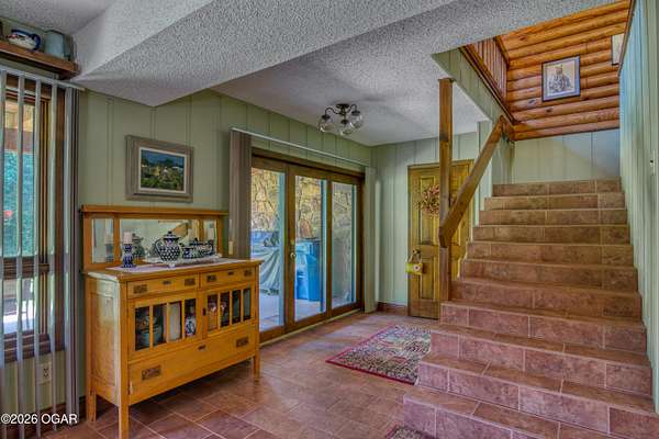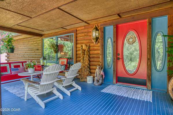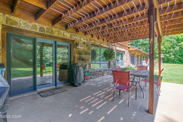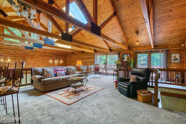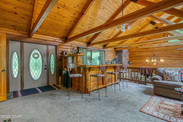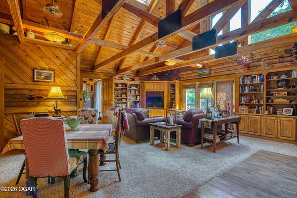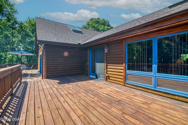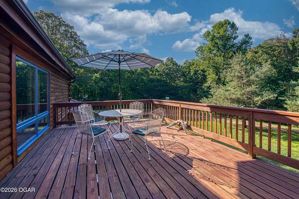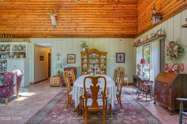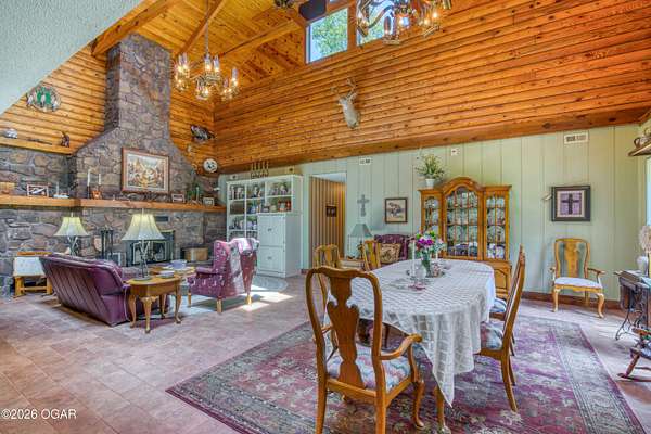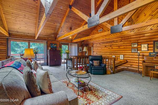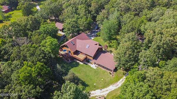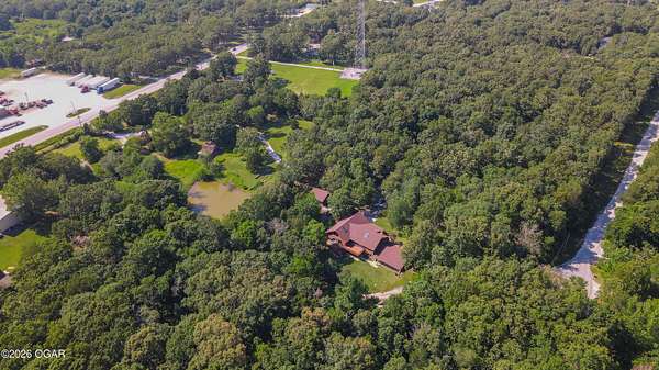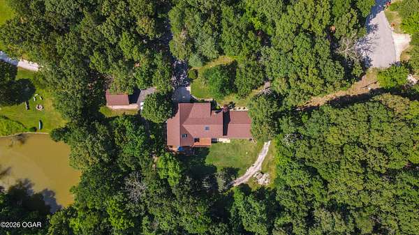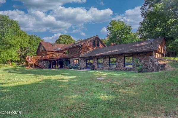 Your opportunity to have your own private, wooded luxury retreat just minutes from town is now! This rare South Joplin property offers the peaceful experience of enjoying nature, beauty and wildlife everyday. Sitting on 8 acres with a pond and barn for additional storage or hobbies, this immaculately maintained 5 bed home is full of character and is solid and quality built making it efficient and comfortable. The house was thoughtfully designed with entertaining family and friends in mind, with 3 living areas, large, spacious rooms and a functional layout. The great room is the perfect hang out spot with a beautiful stone floor to ceiling fireplace, tall ceilings and plenty of natural light. Quaint front porch for enjoying a lazy afternoon, large deck off the back of the home, and plenty of space outside to entertain. Home has been meticulously cared for! Roof is only 5 years old and new windows in 2025. Amazing location, only 10 minutes to both hospitals and shopping, and a 30 minute drive to Bella Vista, AR. Schedule your private viewing today.