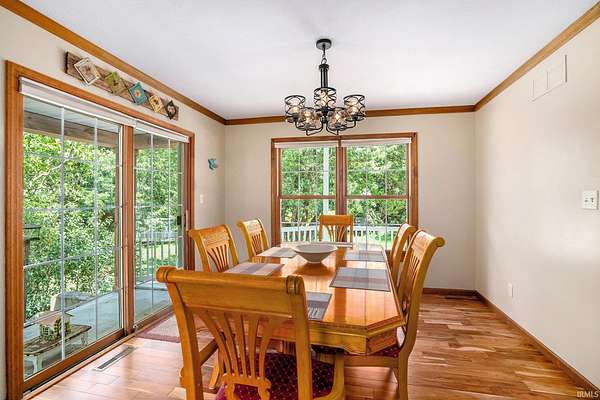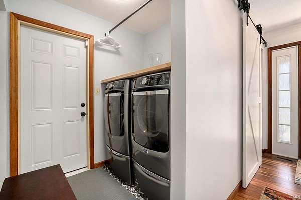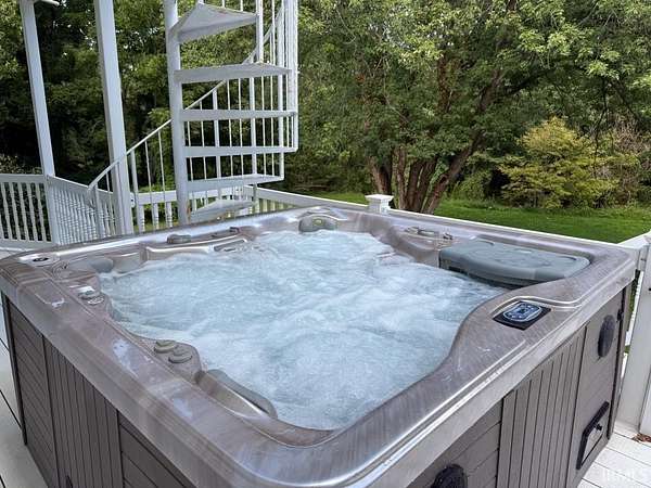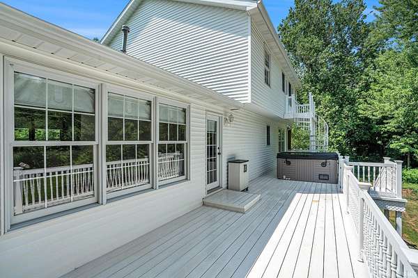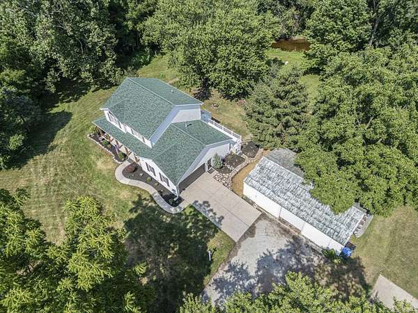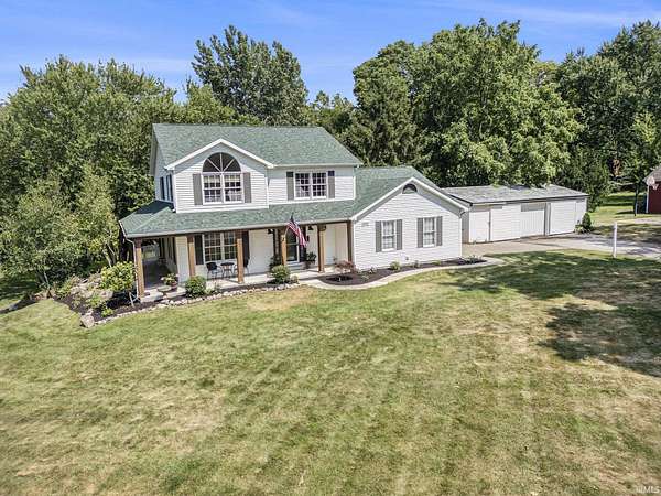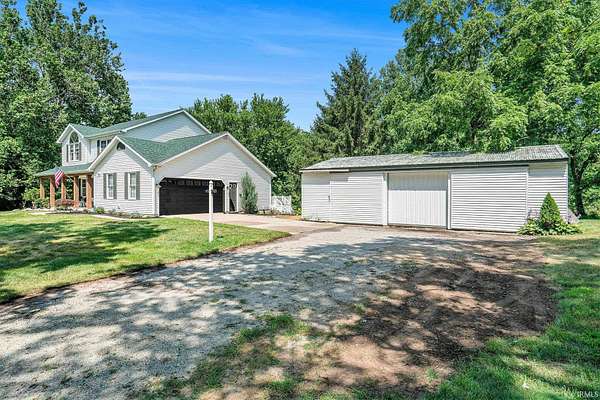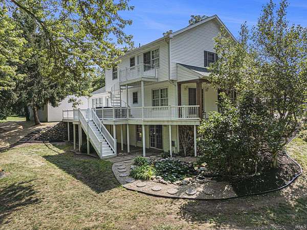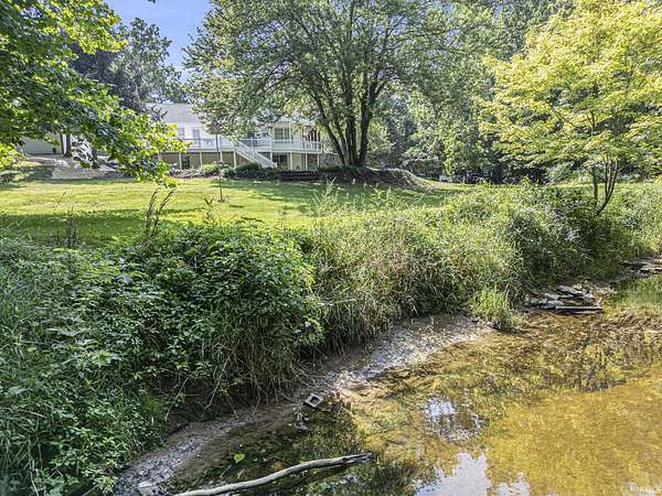 Discover your own private retreat on nearly 7 acres along peaceful Baugo Creek, located in the highly sought-after Jimtown School District. This stunning property offers the perfect blend of privacy, space, and modern updates. Step inside to find brand new hardwood flooring throughout the main level and fresh, plush carpeting that create a warm and inviting feel. The updated kitchen is truly the heart of the home, featuring abundant cabinetry, expansive counter space, stainless steel appliances, and a raised bar perfect for casual dining and entertaining. The finished walk-out basement provides additional living space with a cozy family room, gas fireplace, dedicated workspace, and a fifth bedroom—ideal for guests or flexible living needs. Upstairs, the primary suite is a true escape, complete with a private balcony and spiral staircase leading down to your hot tub and expansive multi-level Trex deck—perfect for relaxing or entertaining under the stars. Outside, enjoy the charm of a wraparound porch overlooking serene, wooded surroundings. The property also includes a 2-car attached garage and a 40x24 pole barn, offering plenty of space for storage, hobbies, or outdoor equipment. With a brand new roof (March 2025), & water softener. With an unbeatable setting, this property offers the lifestyle you’ve been waiting for—peaceful, private, and move-in ready.
