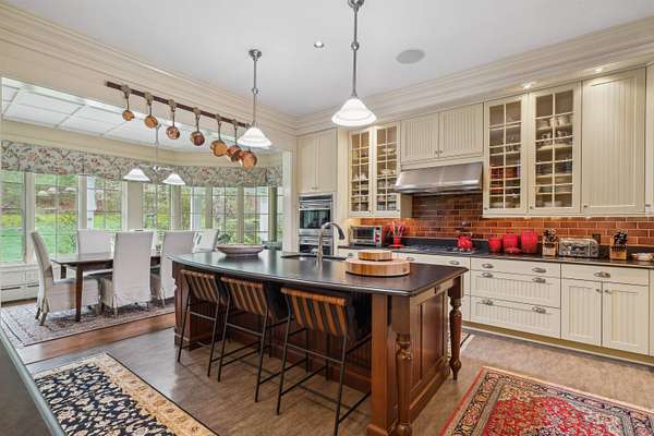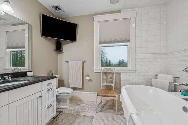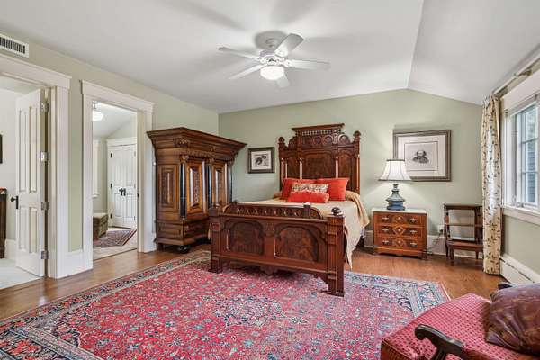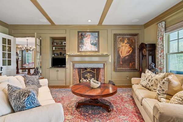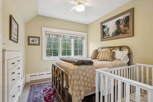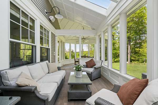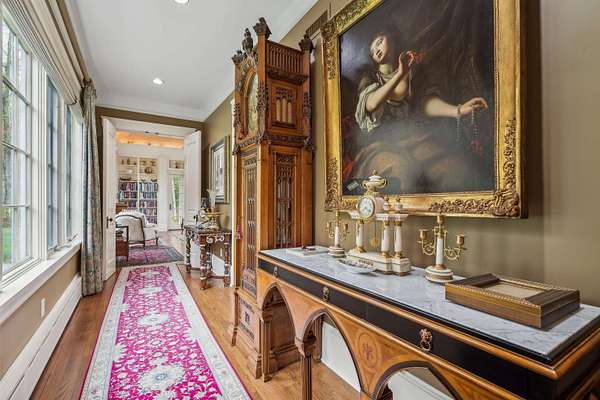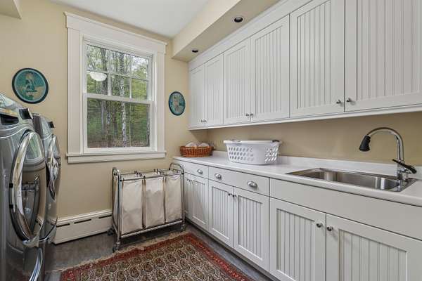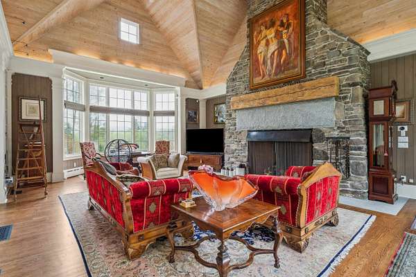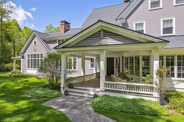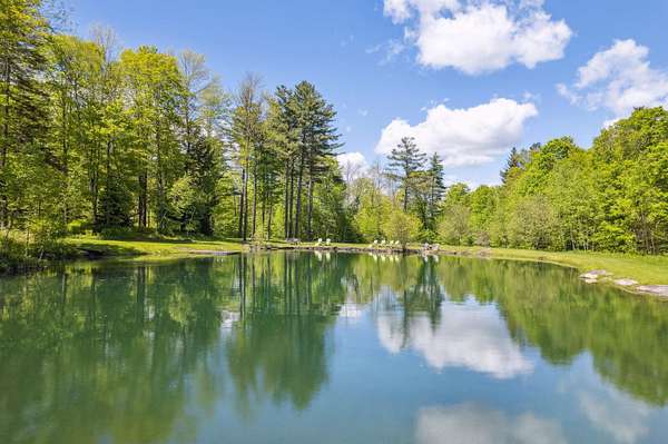 "LONG WAY HILL" - An elegant and beautifully constructed residence of the highest quality, privately situated on 54 acres with long-range views, lawns, gardens, fields and trails. Beautiful perennial and wildflower gardens offer charming, private views of woods and hills over a half-acre pond. Architect-designed in the style of a traditional New England country home, the main residence has 5 bedrooms each with ensuite baths, 3 fireplaces, a 4-story elevator, spectacular great room with vaulted ceiling, massive stone fireplace and library bookshelves. A formal foyer greets guests, offering an elegant welcome into the home. The oversized gourmet kitchen has an eat-in dining table, butler's pantry and adjoining children's playroom. The formal dining-sitting room has a fireplace. 1st level private library (office) with fireplace, a bar room and private half-bath. The lower level offers a game-theatre room plus a workout room with sauna. The 2 bedroom apartment has full kitchen, laundry, and sitting-dining area - perfect either for guests or as a caregiver or au pair suite. Mud-entry, 3-car attached garage. 1st-rate, over-engineered mechanicals including central AC throughout, automatic whole-house backup generator, and high speed fiber-optic connectivity. 4 open porches, outdoor hot tub, screened-in porch, walking trails, open fields. Located 2 minutes from Twin Farms and Barnard Village/Silver Lake, and 15 minutes from Woodstock village. SEE MORE ON THE PROPERTY WEBSITE.