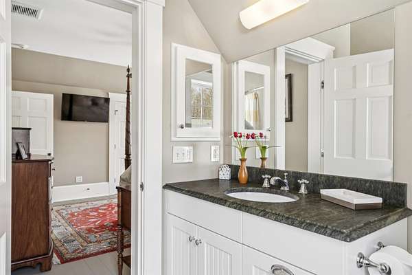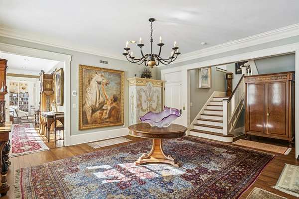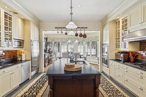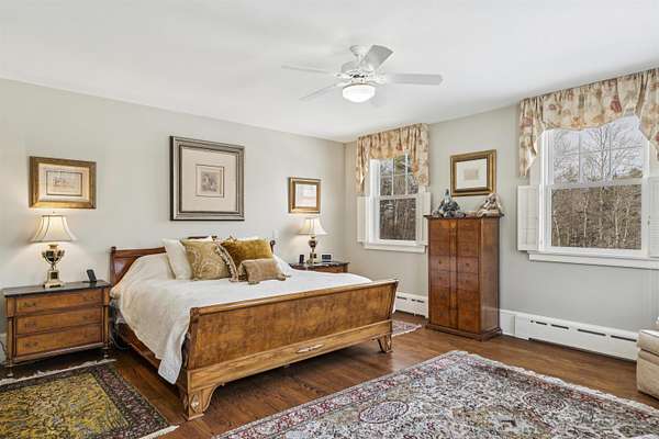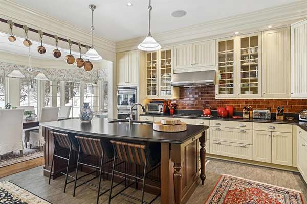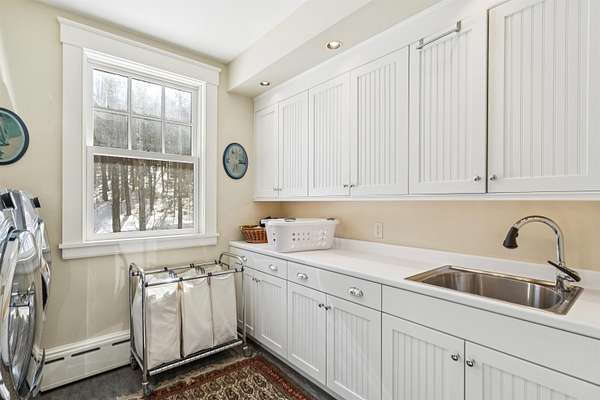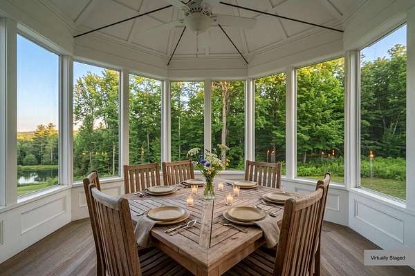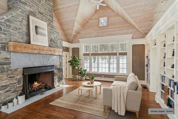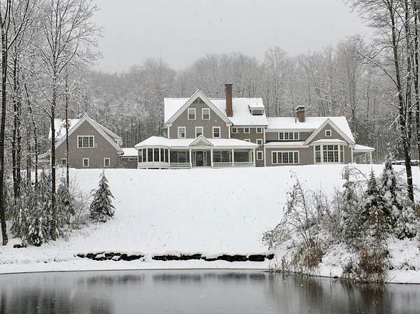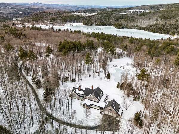 Set on 54 exceptionally private acres, Long Way Hill is a a quietly luxurious Vermont country retreat overlooking a half-acre pond, with sweeping lawns, gardens, fields, and woodland trails. It is located minutes from Silver Lake and Twin Farms, and 15 minutes from Woodstock. Designed by David Beilman and built by Savelberg Construction in 2006, the home is defined by its high craftsmanship--beautifully detailed, high ceilings, and informed by the understated elegance of New England architecture. The home is both gracious and comfortable, created for gathering. A dramatic great room with vaulted ceiling and floor-to-ceiling stone fireplace anchors the main level, while a well-appointed gourmet kitchen with eat-in dining, butler’s pantry, and generous workspace invites connection and ease. A spacious living room with a fireplace and dining-sitting area, and a private library/office add warmth and versatility. Five en suite bedrooms, thoughtfully arranged over the second and third floors, offer privacy and separation, complemented by a four-story elevator. The lower level offers a game-theatre room, fitness space with sauna, and additional recreation areas. A separate two-bedroom apartment with full kitchen and laundry accommodates guests. Outdoors, perennial and wildflower gardens unfold from spring through fall, surrounding open porches, a screened porch, and a hot tub overlooking the pond. Wildlife, birdsong, and star-filled skies define the setting. Top-tier mechanical systems, central AC, whole-house generator, and high-speed fiber connectivity. The property is meticulously maintained.