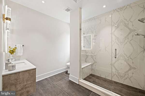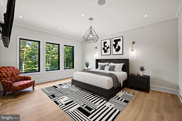 Newly constructed luxury estate set on 4.75 private acres adjoining protected state land, offering unmatched privacy and long-term serenity. This architectural showpiece blends striking modern design with timeless natural stone and exceptional craftsmanship. Built by Pyramid Contractors Ltd., this home showcases superior construction quality, thoughtful design, and high-end finishes throughout. A solid BUILDER WARRANTY provides valuable peace of mind rarely found in luxury properties. Interior highlights include 7 French oak plank flooring, Marvin windows, dramatic ceiling heights, a 6' x 8' solid oak pivot front door, expansive entertaining spaces, and a luxurious upper-level primary suite with spa-inspired bath featuring Calacatta Gold quartz. Designed for seamless indoor-outdoor living, the estate features a beautifully appointed outdoor kitchen and expansive patio - ideal for elevated entertaining, al fresco dining, and enjoying the serene wooded backdrop. The home is further enhanced by a modern smart septic system, offering advanced efficiency and monitoring technology for added convenience and long-term performance. A sweeping private drive and circular motor court create a grand arrival, while the protected natural surroundings ensure lasting privacy. A rare opportunity to own a newly built, warrantied luxury estate in the heart of Bucks County.