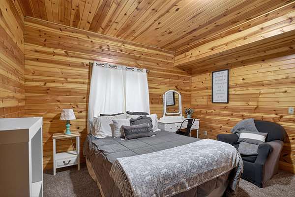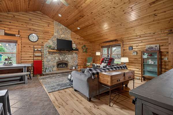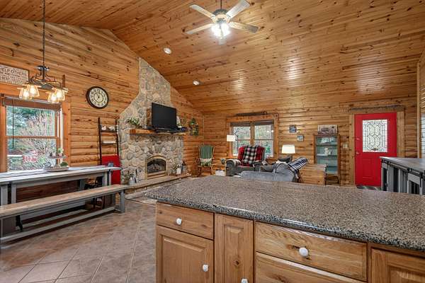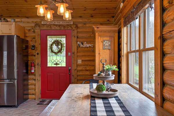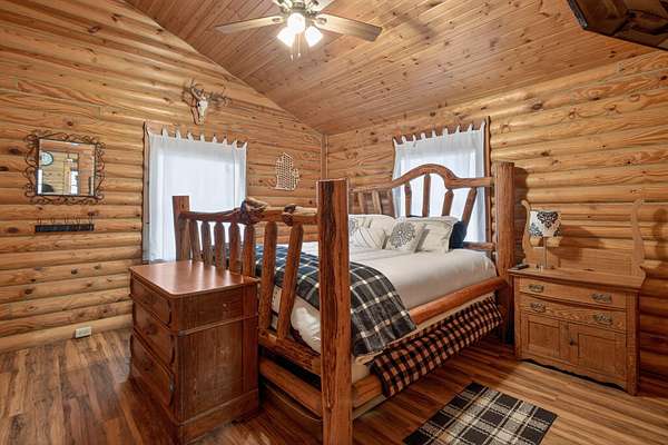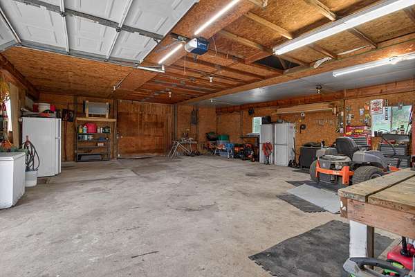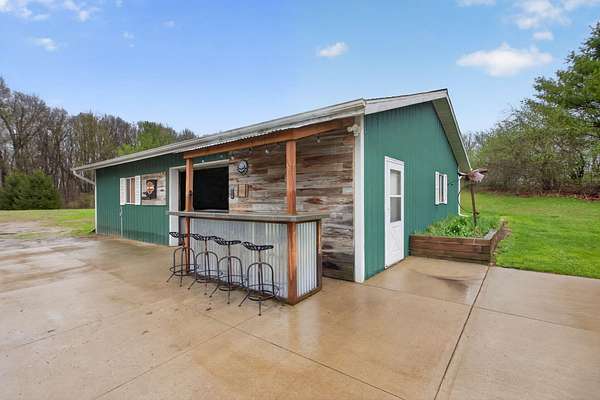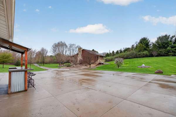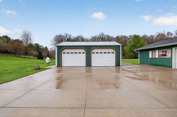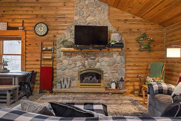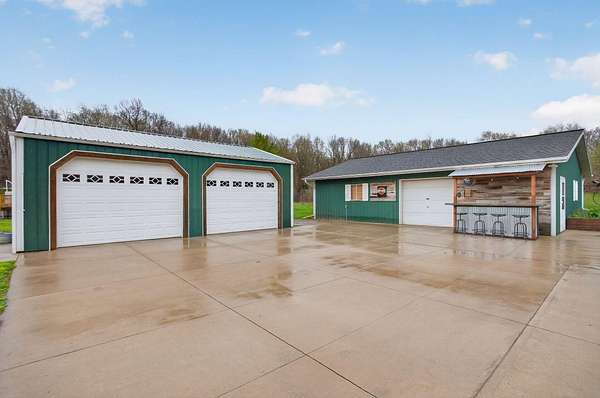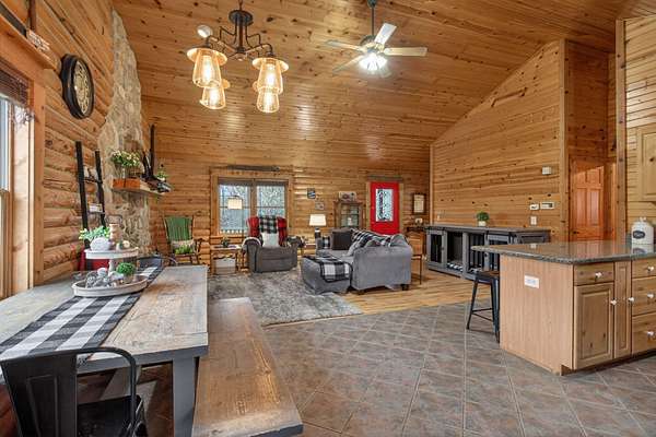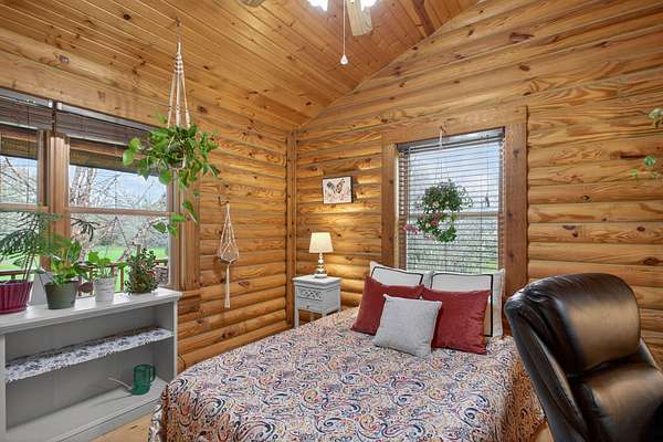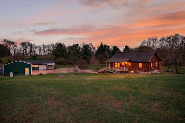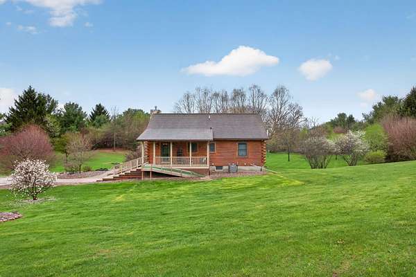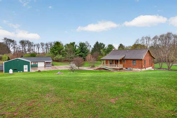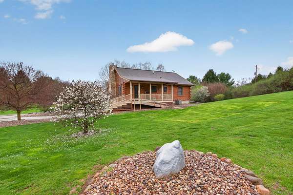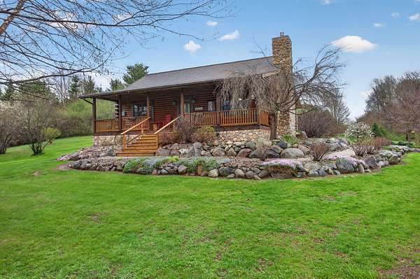 Imagine coming home to a perfectly tree-lined, long driveway leading to your dreamy front porch, beautiful landscaping, heated pole barn complete with an outdoor patio bar, all on 13.75 acres! This freshly stained log home flaunts a grand stone gas fireplace, cathedral ceilings, airy & spacious rooms, plentiful closets and all appliances. With 2 bedrooms and a full bathroom on each level, lodging or entertaining is easy. The exterior wood-burning system option will help keep costs efficient! Welcome home to stunning views, peace & tranquility just in time to watch the stars.