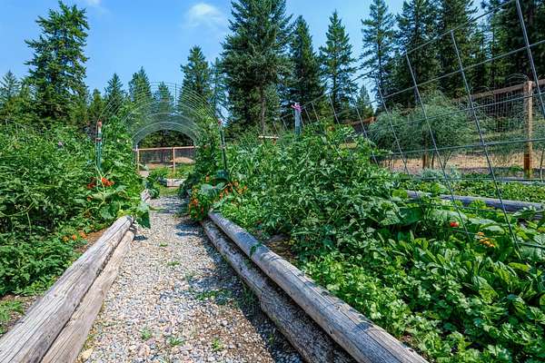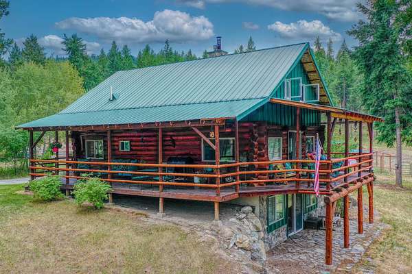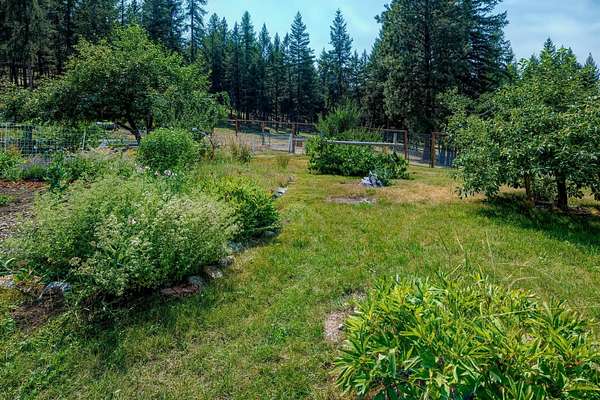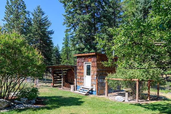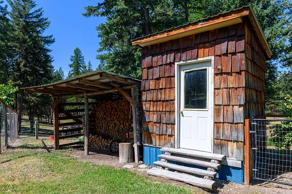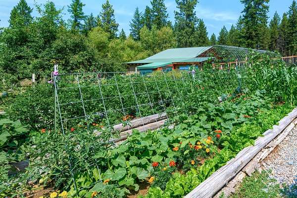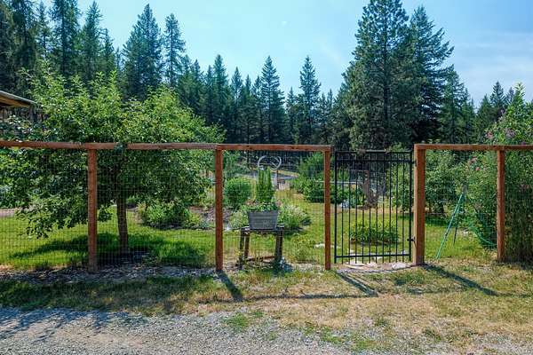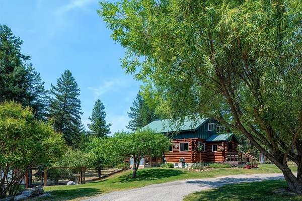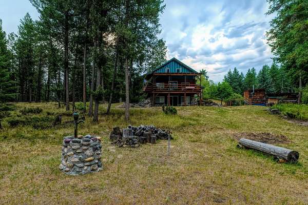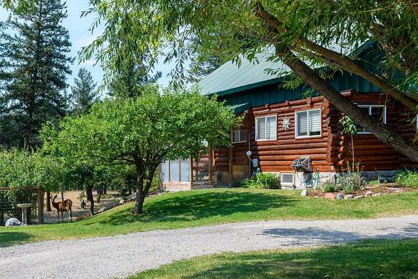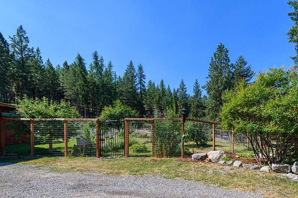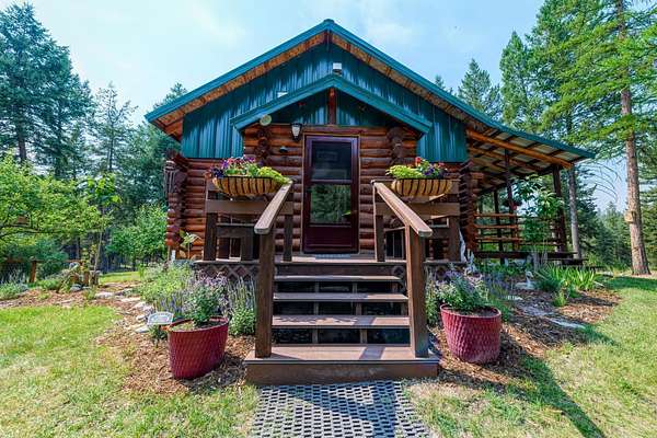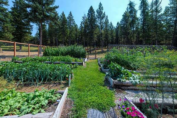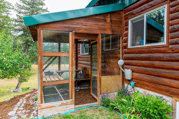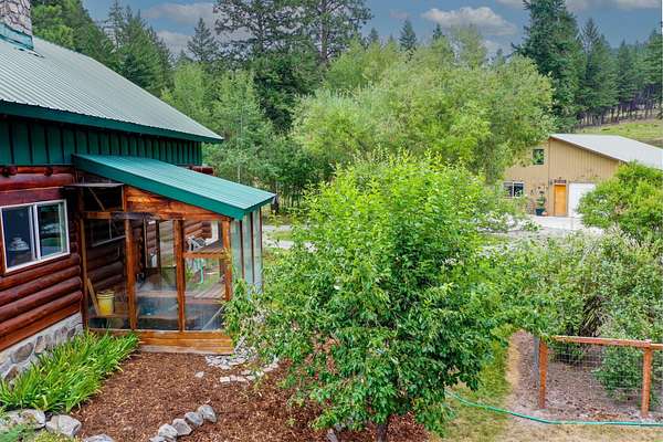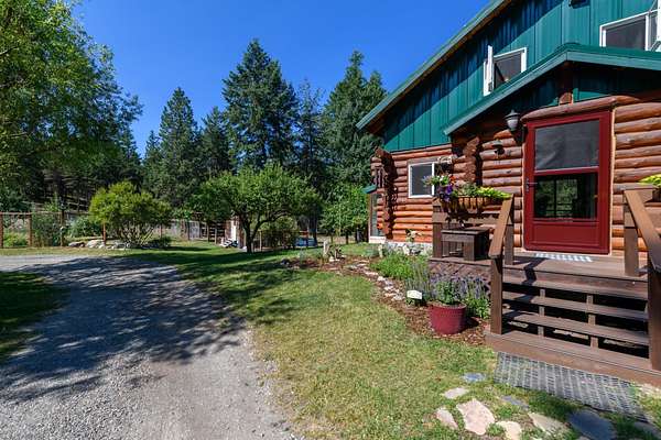 Bordering 1000s of acres of Kootenai National Forest, this 30-acre Montana retreat offers a highly-desirable blend of privacy, serenity and convenience. Nature abounds on this piece of heaven on earth, located just minutes from Lake Koocanusa and Abayance Bay Marina and a short 15-minute drive to Eureka. The log homestead, outbuildings and abundant gardens are buffered by a well-kept forest for supreme privacy and complete immersion in nature. Wildlife, including deer, herds of elk, an occasional moose and other more illusive animals like turkeys, waterfowl and a wide variety of birds graze in this sanctuary setting, finding respite on this land. They might be seen at the sweet little pond, as you drive in, at the water feature just outside the kitchen window or meandering through the forest. The 3-Level log home, exudes comfort and rustic charm. The air-lock entry opens into a new custom country kitchen with abundant windows that bring the great Montana outdoors inside. The main level half-bath is complete with laundry hookups and a closet with a chute, and the kitchen boasts multiple pantry cupboards, a bright alcove suitable for sunrise meditation and a secretary space to add functionality. The heart of the home is the massive stone fireplace in the main-level living room, with the back exposed in the kitchen. Step out under covered porches on 2 sides with ample room for BBQs, entertaining and lounging to watch the weather and Northern Lights. Upstairs is a dreamy master suite. This is a warm and inviting space with barn wood accents, stonework and distressed flooring. Highlights of the suite include a spacious dressing room with open closet and space for furnishings and storage, a linen closet and bathroom closet. The lower level boasts a den with second stone fireplace with propane insert, a guest bedroom, a spa bathroom with jetted Jacuzzi tub with in-line heater and large storage closet. It is replete with a small office and insulated root cellar to accommodate the garden harvest and your bulk food supply. Walk out the basement slider onto the covered patio area for a view across an open meadow. Below find a fire-pit, a stone-covered well-head with pitcher pump for easy reliable water as well as a frost-free hydrant. Across the driveway is the garage with work bench and stairway to huge storage attic above. The attached bunkhouse apartment might be used as a guest house, a spacious work-at-home-office, commercial studio or Airbnb. It is outfitted with a full-bath, propane and electric heat, a nice kitchenette and upstairs loft graced by an Aspen railing for rustic appeal. Currently, the apartment serves as a commercial massage therapy studio, library and loft-bedroom for the grandkids. Versatile add-ons include a carport with extra space for tools and a potting bench, as well as a frost-free hydrant. Equipment storage and an 8x10 insulated chicken coop are convertible for other uses. Behind is a fenced horse pasture. Expansive fenced gardens provide a variety of orchard fruits, grapes, and a lovely herb and flower garden. The large system of irrigated raised beds contain perennial asparagus, a variety of berry patches, wild herbs and lots of space for vegetables. Up the mountain, marketable timber creates deep privacy against U.S. Forest Service border. In a natural stand of Aspens just outside your door, enjoy the fire pit and fish pond. A wood-fired sauna, greenhouse, covered woodshed, an insulated dog pen and rustic log playhouse are the country amenities completing this one-of-a-kind mountain homestead.