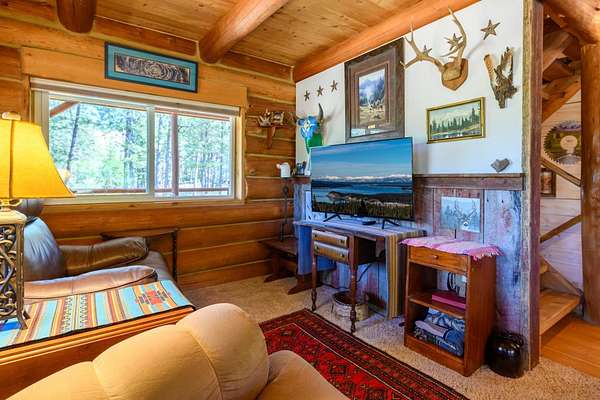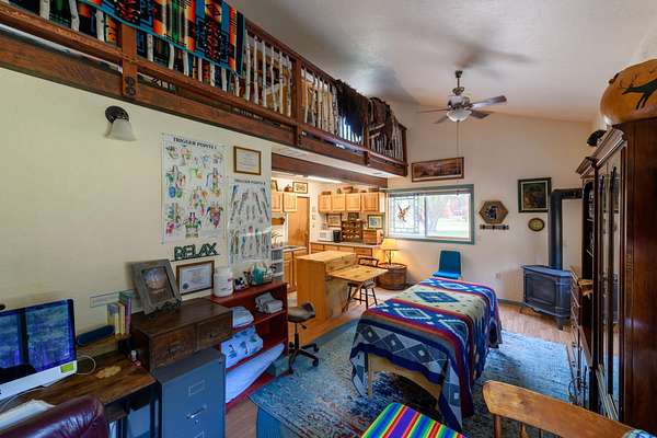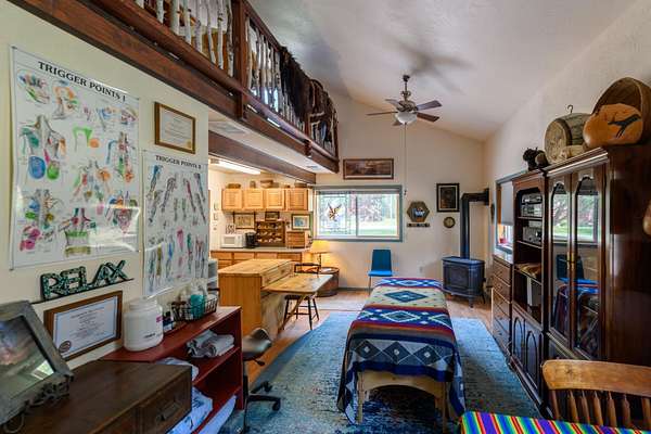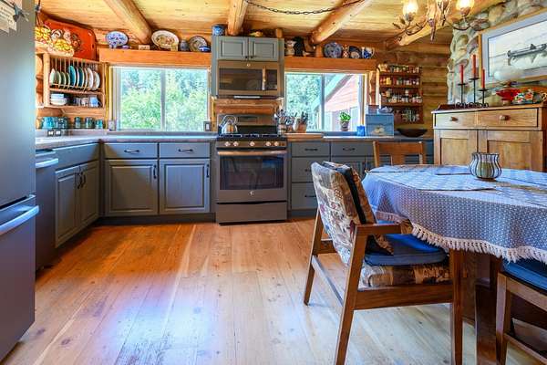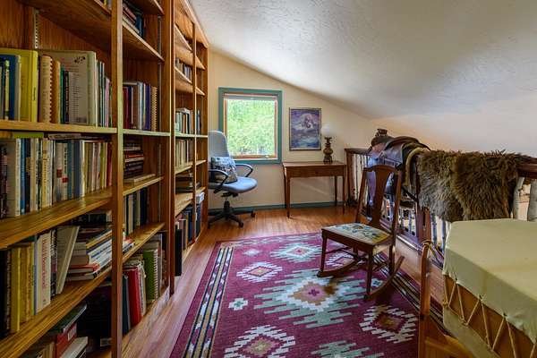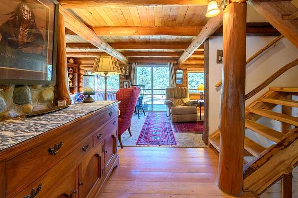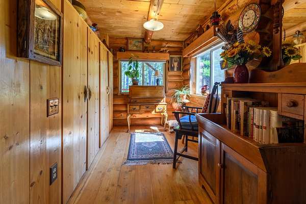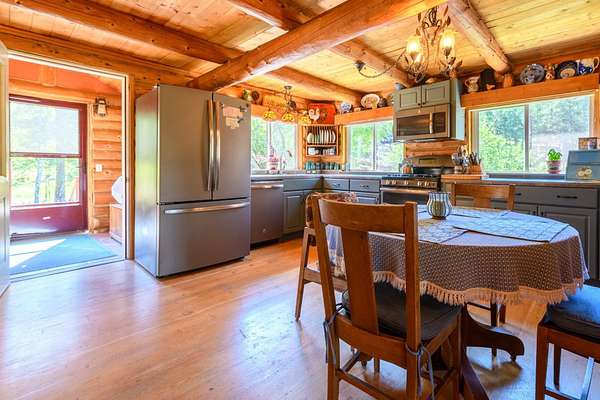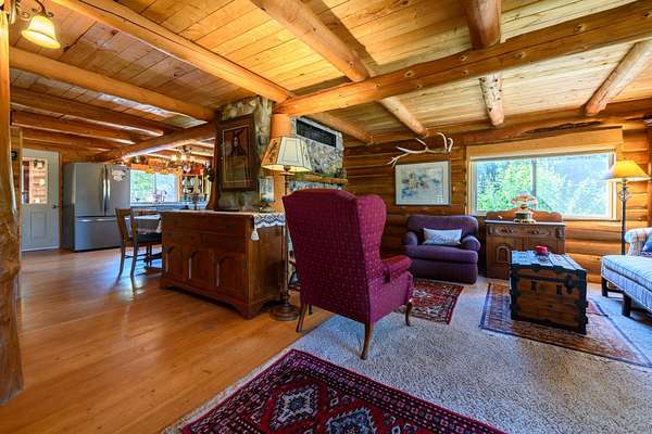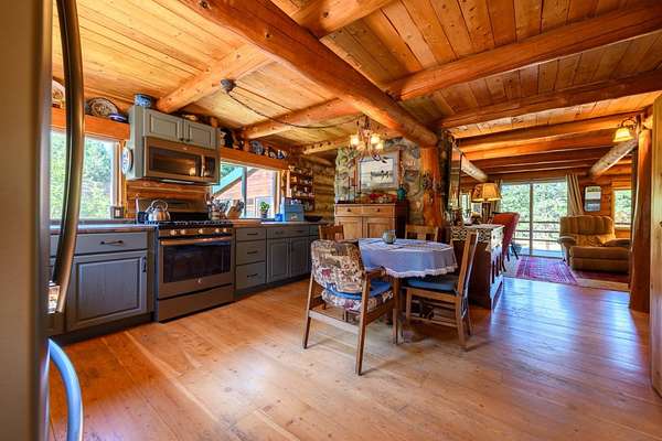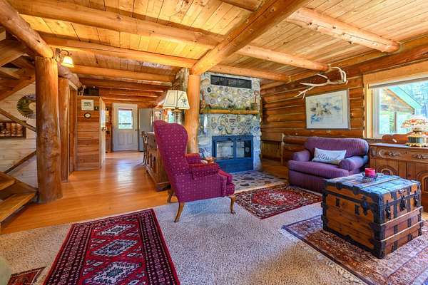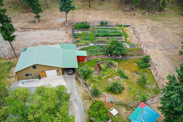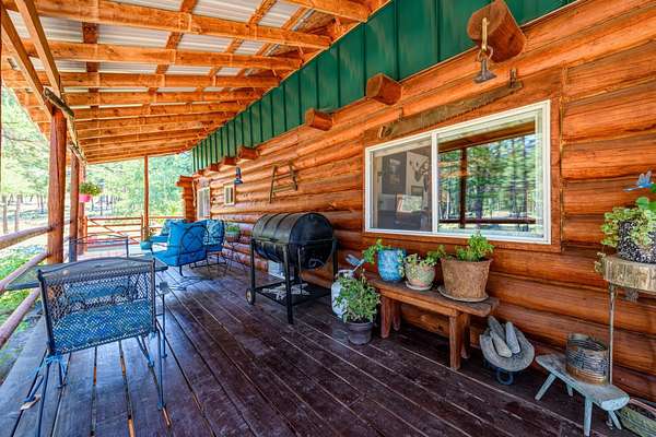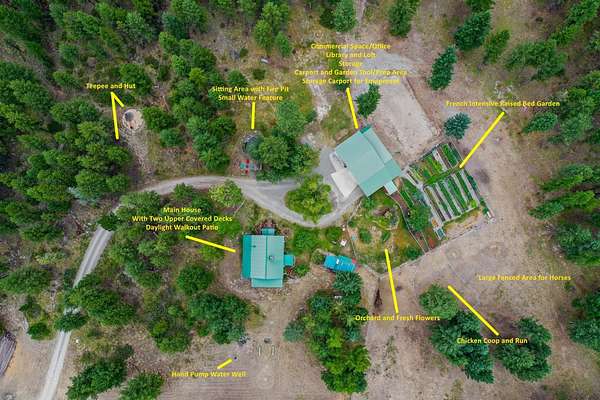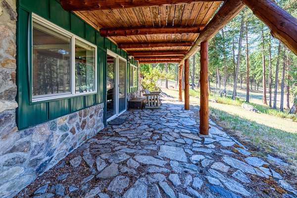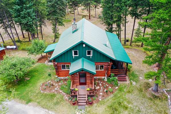 Bordering 1000s of acres of Kootenai National Forest, this 30-acre Montana retreat offers a highly-desirable blend of privacy, serenity and convenience. Nature abounds on this piece of heaven on earth, located just minutes from Lake Koocanusa and Abayance Bay Marina and a short 15-minute drive to Eureka. The log homestead, outbuildings and abundant gardens are buffered by a well-kept forest for supreme privacy and complete immersion in nature. Wildlife, including deer, herds of elk, an occasional moose and other more illusive animals like turkeys, waterfowl and a wide variety of birds graze in this sanctuary setting, finding respite on this land. They might be seen at the sweet little pond, as you drive in, at the water feature just outside the kitchen window or meandering through the forest. The 3-Level log home, exudes comfort and rustic charm. The air-lock entry opens into a new custom country kitchen with abundant windows that bring the great Montana outdoors inside. The main level half-bath is complete with laundry hookups and a closet with a chute, and the kitchen boasts multiple pantry cupboards, a bright alcove suitable for sunrise meditation and a secretary space to add functionality. The heart of the home is the massive stone fireplace in the main-level living room, with the back exposed in the kitchen. Step out under covered porches on 2 sides with ample room for BBQs, entertaining and lounging to watch the weather and Northern Lights. Upstairs is a dreamy master suite. This is a warm and inviting space with barn wood accents, stonework and distressed flooring. Highlights of the suite include a spacious dressing room with open closet and space for furnishings and storage, a linen closet and bathroom closet. The lower level boasts a den with second stone fireplace with propane insert, a guest bedroom, a spa bathroom with jetted Jacuzzi tub with in-line heater and large storage closet. It is replete with a small office and insulated root cellar to accommodate the garden harvest and your bulk food supply. Walk out the basement slider onto the covered patio area for a view across an open meadow. Below find a fire-pit, a stone-covered well-head with pitcher pump for easy reliable water as well as a frost-free hydrant. Across the driveway is the garage with work bench and stairway to huge storage attic above. The attached bunkhouse apartment might be used as a guest house, a spacious work-at-home-office, commercial studio or Airbnb. It is outfitted with a full-bath, propane and electric heat, a nice kitchenette and upstairs loft graced by an Aspen railing for rustic appeal. Currently, the apartment serves as a commercial massage therapy studio, library and loft-bedroom for the grandkids. Versatile add-ons include a carport with extra space for tools and a potting bench, as well as a frost-free hydrant. Equipment storage and an 8x10 insulated chicken coop are convertible for other uses. Behind is a fenced horse pasture. Expansive fenced gardens provide a variety of orchard fruits, grapes, and a lovely herb and flower garden. The large system of irrigated raised beds contain perennial asparagus, a variety of berry patches, wild herbs and lots of space for vegetables. Up the mountain, marketable timber creates deep privacy against U.S. Forest Service border. In a natural stand of Aspens just outside your door, enjoy the fire pit and fish pond. A wood-fired sauna, greenhouse, covered woodshed, an insulated dog pen and rustic log playhouse are the country amenities completing this one-of-a-kind mountain homestead.