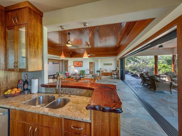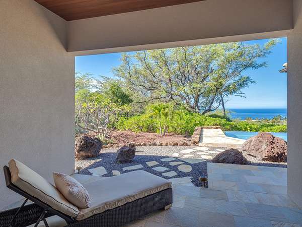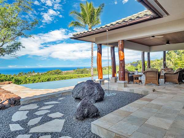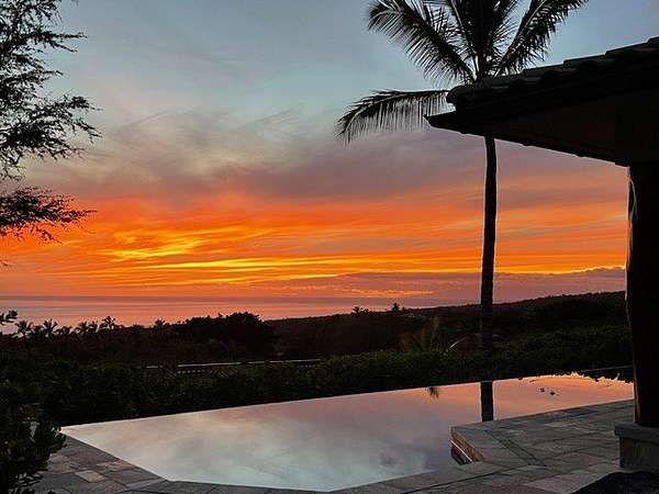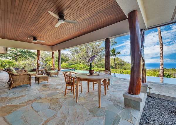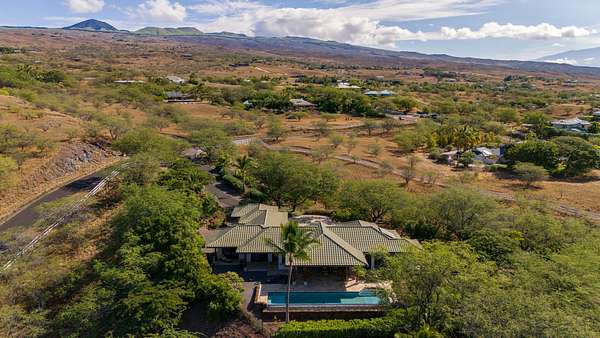 Perched 770 ft above sea level in "The Heathers," this home feels like a hideaway where sunshine, ocean breezes and sweeping views meet serenity. Tucked away for privacy yet easily reachable, it hits the sweet spot between solitude and island living. Sited on 3.26 acres, the single-level, 2,389 sf floor plan (built in 2009) was custom-crafted with designer-grade materials for its original owners: * Fleetwood pocket doors/screens opening to 24' * Beautiful Quartzite stone flooring throughout * Solid wood doors and shutters crafted from African mahogany by Parks & Parks * Koa veneer kitchen cabinetry and solid koa-wood bar by Gary's Custom Cabinets & Fine Furniture * Bosch range and dishwasher * Toto toilets, Toto master-bath faucets/shower, Kohler guest-bath fixtures * Exquisite Monier Barcelona 900 S, concrete tile roof with Copper gutters * 10' * 50' concrete-reinforced pool * Raynor garage doors * AC in bedrooms * Solar hot water Natural materials set the tone: cool quartzite underfoot flows through every room, while rich Mahogany wood trim & granite surfaces lend warmth and grounding. The stone & wood blend creates an upscale yet welcoming vibe - where you can kick off your sandals & relax. Fully furnished, the home includes three bedrooms and three bathrooms - ideal for a family, guests, or a peaceful retreat without the burden of a massive estate. A 540 sf garage offers ample space for vehicles, toys, or a workshop. The pool isn't just for dips - envision morning laps, lounging by the water, or evening sunsets by the pool, and 800+ sf of lanai for truly embracing indoor/outdoor living. The views are extraordinary: ocean vistas, whale sightings, the lush silhouette of the sun rising behind the Kohala mountains and magnificent sunsets over the Pacific Ocean and Maui at the days end. Thoughtfully priced, this turnkey residence is ready for you. Welcome home ~