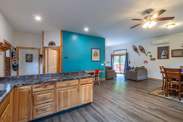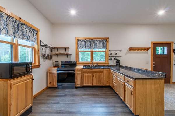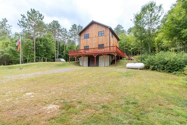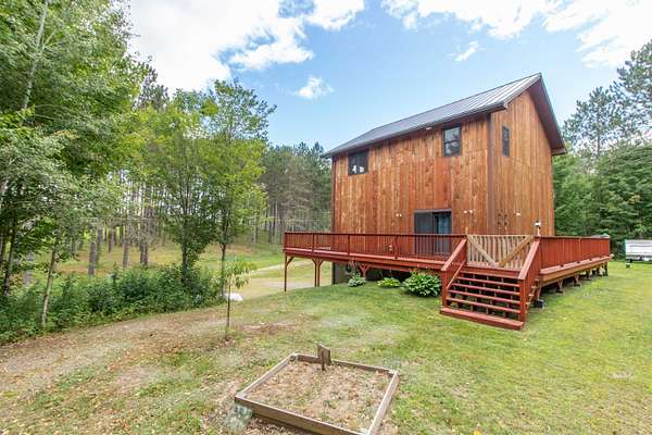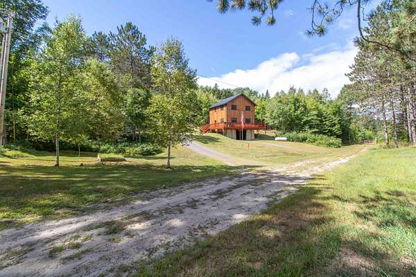 This 1,680 sq. ft. Modern Rustic Chalet is the ultimate basecamp for year-round adventure. Set on a private meadow surrounded by woods, the home offers access to VAST and VASA trails--perfect for snowmobiling, ATVing, and endless outdoor recreation. After a day on the trails, pull into the basement garage with room for gear and toys, or relax on the full wraparound deck while watching wildlife or even the Northern Lights. The main level features an open kitchen, dining, and living area designed for gathering, plus a half bath with laundry. Upstairs offers a large primary bedroom, 3/4 bath, and additional bedroom. Only minutes from town for convenience, yet surrounded by opportunities for hiking, biking, skiing, hunting, fishing, boating, and swimming. A true four-season getaway for outdoor enthusiasts.