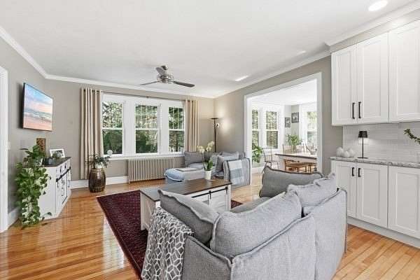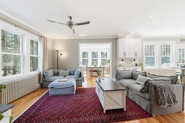 The perfect combination of town and country, situated in the center of Holden, yet the last house on a quiet neighborhood road providing unapparelled privacy in a convenient walk to town location with nearly two acres of land. This truly delightful property is surrounded by a" ring" of mature trees, shade trees, and forest. The traditional four-bedroom New England craftsman style home has hardwood flooring throughout, with many built-in features as well as the benefit of a recent addition which includes a primary bedroom with its own scrumptious bath and walk-in closet, a new mudroom, laundry room, half bath and two-car garage. The sun filled kitchen was professionally designed and renovated in 2024. This is a luminous home, with banks of south-facing windows that help to bring the outside, "in" to enjoy four seasons of natural light while overlooking the private grounds with its many perennial plantings, frog pond, and large private back deck for outside relaxation and entertaining.