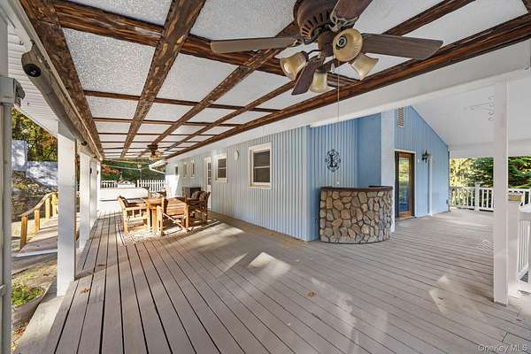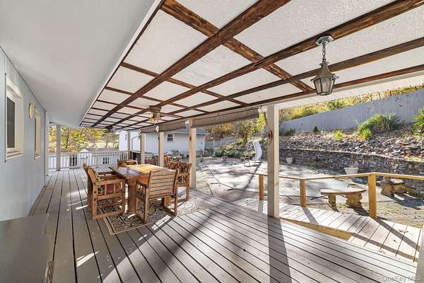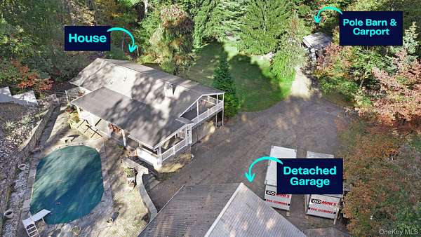 Set well back from the road on over 2 acres of land, this ranch-style home offers privacy and in a truly unique setting. A spacious, covered wrap-around deck encircles three sides of the home, providing the perfect spot to relax everyday and entertain guests. The interior has the ease of one level living with a primary bedroom including a private half bath and two generous closets. The property features multiple outbuildings that add unmatched versatility. A detached garage offers a footprint of 576 square feet. The lower level is currently set up as a workshop and the upper level can be tailored to suit a variety of needs. You'll also find a large pole barn with an attached carport, boasting a combined area of over 1,200 square feet ideal for parking, storage and tinkering. If that wasn't enough room for your cars, toys, crafts and projects there are an additional two sheds on the property. With a vast amount of potential uses, this is a rare find for the area. Located under 15 minutes to the Metro North Train Station and a short drive to the abundance of amenities on Route 9.