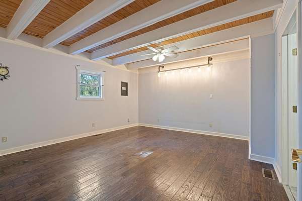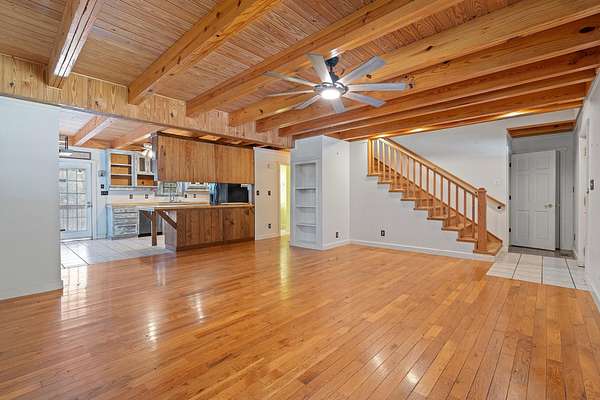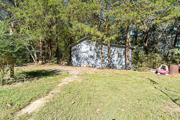 Private 7+ acre retreat featuring a spacious 3-bedroom, 3.5-bath, 2-story home with office (could be used as additional bedroom) and finished basement apartment with private entry on ground floor to back entry. Gun safe and wall safe in primary bedrooms to stay. ICF Foundation for strong, insulated, and energy-efficiency. Enjoy peaceful living with very low road and town noise, while being just minutes from Fayetteville shopping and 30 minutes to Huntsville. Property includes a barn with electricity, 220-powered workshop with concrete floor, charming "she shed", detached 2-car garage and a 1 car attached semi-finished garage, fenced pasture land, and mature trees. Relax or entertain on the refinished balcony, and take advantage of the convenience of a circle driveway and scenic surroundings taking in all that nature shares.