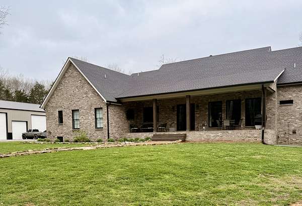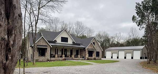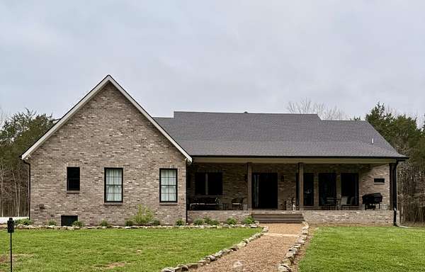 Welcome to a truly exceptional Tennessee retreat where luxury craftsmanship meets peaceful country living. Nestled on 5 private, tree-lined acres on a quiet dead-end road, this custom-built home offers the perfect blend of privacy, comfort, and elevated design. Inside, you’ll find soaring 10-foot ceilings with elegant tray accents, an open-concept layout filled with natural light, and a shiplap wood gas fireplace anchoring the living space. The chef’s kitchen is a showpiece, featuring a remarkable 13’3” Quartzite island with sink, pot filler, professional-size refrigerator and freezer, 36” electric range with commercial-grade hood, under-cabinet lighting, and a spacious walk-in pantry with a convenient pantry garage grocery door for easy unloading. The primary suite is a luxurious escape, complete with a spa-like bath featuring a walk in tile shower, and an impressive custom closet room. Upstairs, a bonus suite with full bath and additional flex space offers versatility for a 4th bedroom, guest quarters, or media space. Designed for both everyday living and entertaining, this home is loaded with upgrades including surround sound throughout and on the back porch, outdoor TV setup, tankless water heater, LED recessed lighting, spray foam insulation, encapsulation, crawlspace dehumidifier, security system with cameras, & underground utilities.