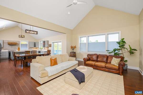 This beautiful modern home in the Godalming neighborhood offers a distinctive layout that sets it apart from others. Upon entering, you are greeted by a welcoming foyer with office space, making this home not just stylish but also functional. The main level offers convenient living with three bedrooms and two and a half baths all on one floor, while an additional bedroom and full bath are located on the terrace level. The exquisite kitchen features a combination of quartz and leathered granite countertops, seamlessly flowing into a spacious kitchen-dining-living area with soaring cathedral ceilings and elegant porcelain tile flooring. The main level is accented by stunning mahogany engineered hardwood floors, and the living room includes a cozy fireplace, perfect for relaxation. The terrace level provides a versatile second recreational space that can serve as a home gym or a theater room. With its impressive curb appeal and large covered front porch, this home invites you to enjoy the outdoors. Located just 29 minutes from the University of Virginia, 20 minutes from Shenandoah National Park, and only 4 minutes from Walmart, Lowe's, and Starbucks, this property perfectly combines modern living with convenience.