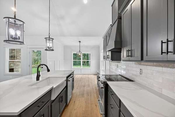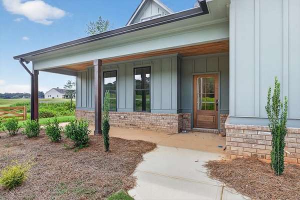 Photos are of this floor plan, but not this home. There is still time to choose some of your finishings and personalize. Discover country living at its finest with this stunning 4 bedroom, 2.5 bath stepless ranch farmhouse situated on 2.60 acres. This house is under construction and expected completion is late December 2025. Inside, you'll find LVP flooring throughout, with tile in the bathrooms and laundry room for durability and style. The open concept living room, kitchen, and dining area creates the perfect flow for both entertaining and everyday living. The living room is highlighted by a modern electric fireplace, adding warmth and charm. The master suite is designed as a true retreat, featuring a huge walk-in closet and a spa-like bath with double vanity, a tile shower with frameless glass door, and a soaking tub for ultimate relaxation. Step outside to the covered back patio, complete with a wood-burning fireplace an ideal spot to enjoy peaceful evenings or gather with friends and family. Use 1312 Mulberry Rock rd. Temple, Ga 30179 to bring you to the private shared driveway, Mulberry path (Blue street sign).