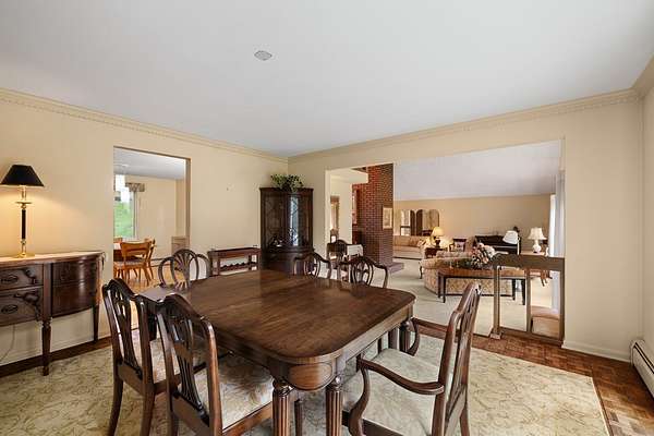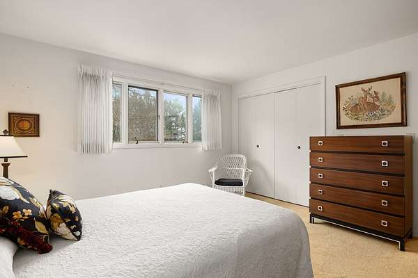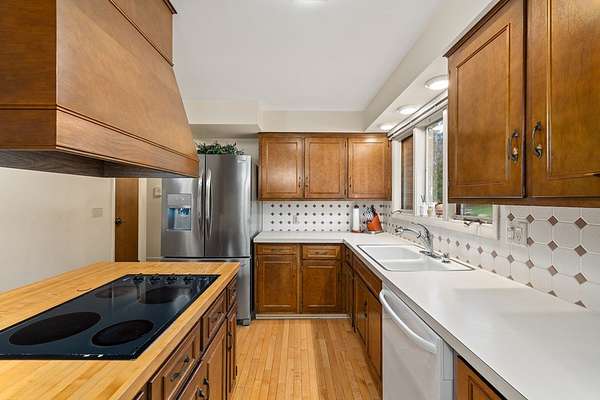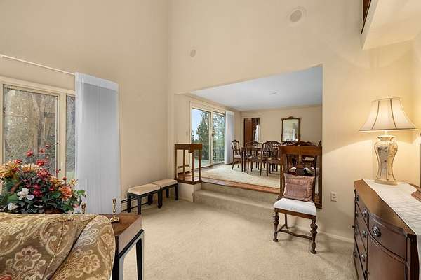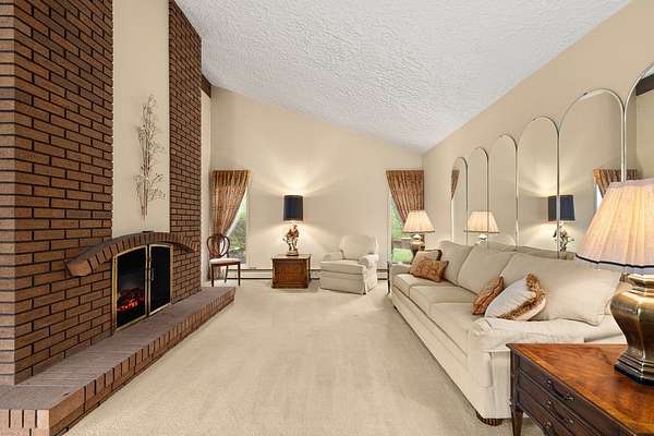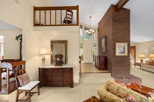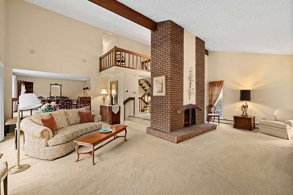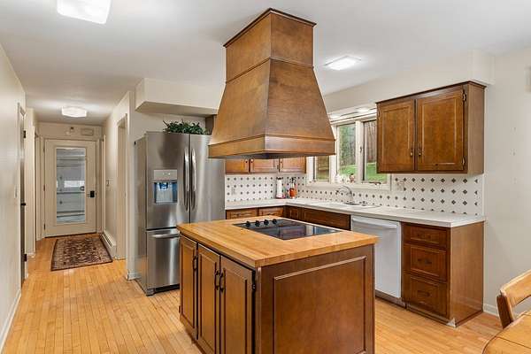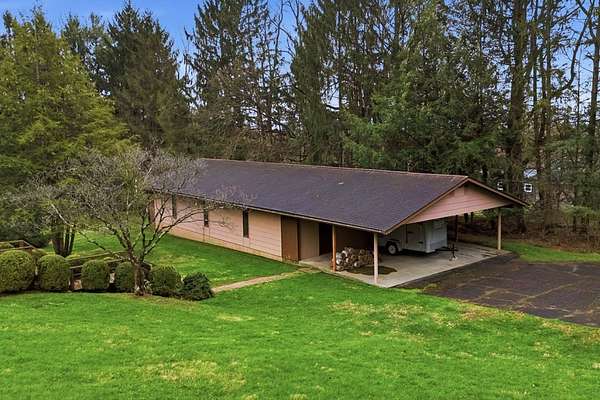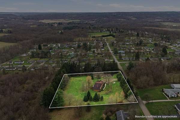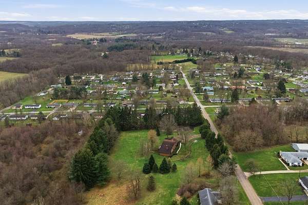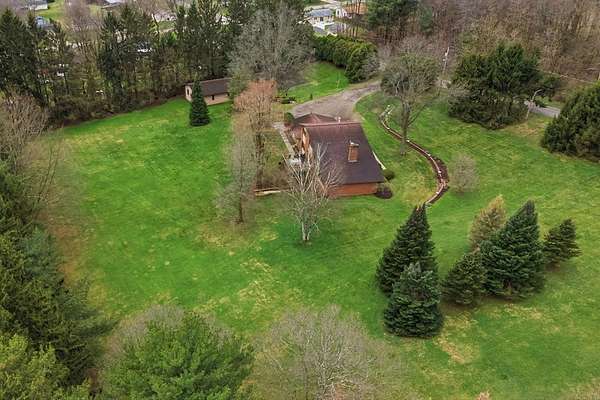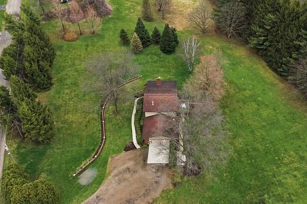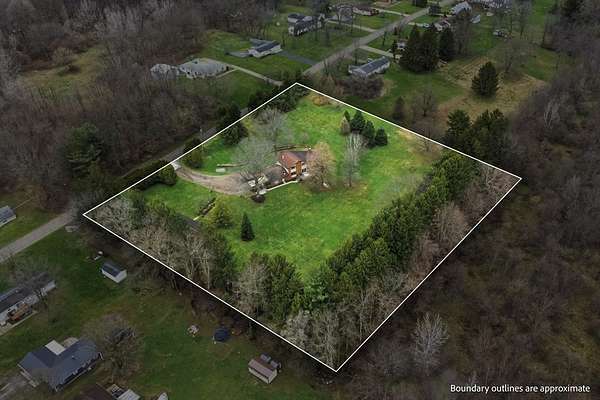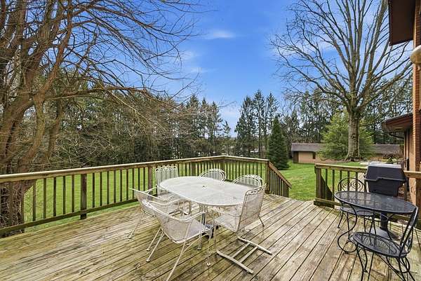 One-owner mid-century modern contemporary on 3.67 private acres—truly one of a kind! A stunning two-story entry with vaulted ceilings and open staircase overlooks the spacious living and dining areas with fireplace. This home offers 3 large bedrooms, including a primary suite with private bath, and 3.5 baths total. The eat-in kitchen with wood floors flows into the formal dining room with new sliders leading to an elevated deck and exceptional private backyard. The main floor also features a den/office with built-ins, laundry, and half bath. The walk-out lower level adds approx. 1,400 sq ft with a family room, fireplace, game room, full bath, and entertainment space with bar, plus access to the oversized heated garage. A 30x60 heated detached workshop with covered porch is a standout. Roof 2016, well pump 2024. A rare blend of space, privacy, versatility, timeless architectural character, peaceful natural surroundings, and room to live, work, and entertain!