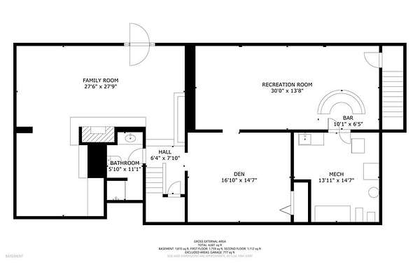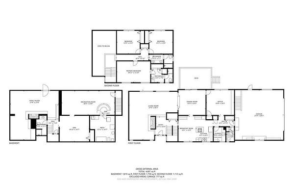 - Basement, Bathroom x 4, Bedroom x 3, Den, Dining Room, Family Room, Great Room, Kitchen, Library, Living Room, Workshop