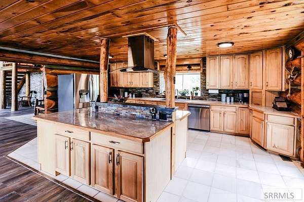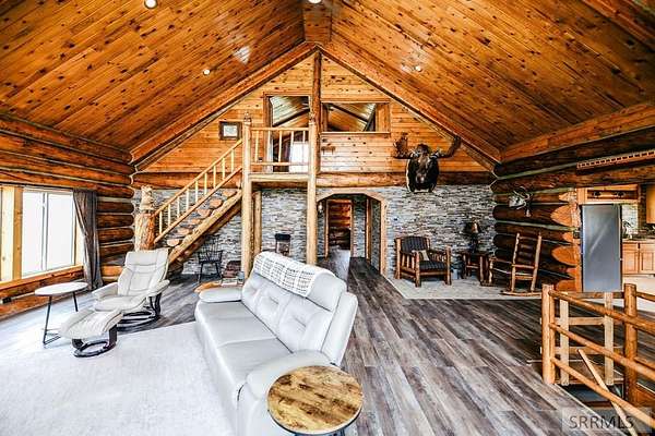 Your Mountain Sanctuary Awaits! Embrace ultimate privacy on 28+ serene acres with this breathtaking three-level log estate, boasting the valley's most iconic views. Unwind on your custom-built deck overlooking the Continental Divide and Salmon River. Inside, giant hand-hewn logs and vaulted ceilings frame a sun-drenched living area anchored by a cozy wood stove and the picturesque mountain view. The gourmet kitchen shines with African marble floors, hickory cabinetry, and seamless flow for entertaining. The main floor also offers a versatile library, new flooring, and a stunning, newly updated bath. Retreat upstairs to your private primary suite, featuring a jetted tub, tiled shower, and a romantic walk-out balcony. Below, find a spacious guest suite, workshop, laundry room, and two-car garage. This outdoor paradise includes water rights, a massive 40x45-foot barn, and lush pastures bordering a seasonal creek. A fenced off garden area keeps critters out and home-grown veggies thriving. With direct access to endless hiking, riding, and fishing, this is mountain luxury off the beaten path. Schedule your private tour today! Check out the Land iD map here: https://id.land/maps/dcc14325ca5c92f1f37f0d9fd67b35bf/share