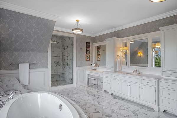 - Cathedral Ceiling(s), Eat-In Kitchen, Elevator, Entrance Foyer, First Floor Bedroom, Formal Dining, Marble Counters, Master Downstairs, Primary Bathroom, Walk-In Closet(s), Wet Bar