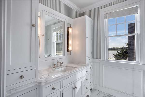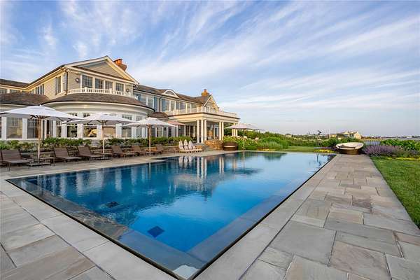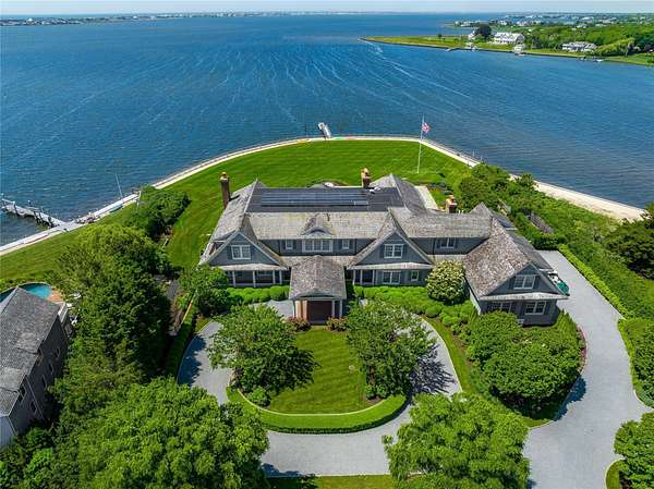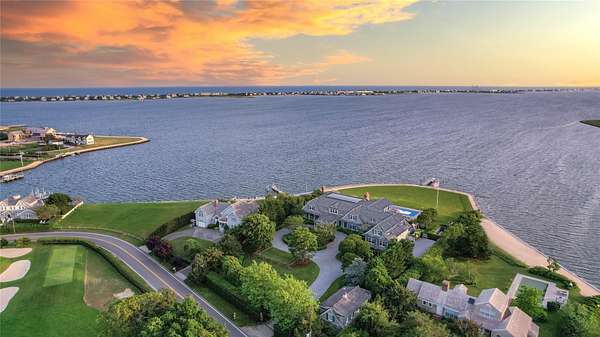 Introducing The Point, an exquisite waterfront estate situated on +/- 2 acres with +/- 380' of frontage on Moriches Bay, a private dock and separate carriage house. Located on one of the most premier waterfront sites in the Hamptons, this brilliantly designed and executed custom home by architect Craig Arm and appointed by interior designer, Bunny Williams, features an 8 bedroom, 9.55 bath main house and 2 bed, 2 bath carriage house with the finest materials and details throughout. Ideal for entertaining on any scale - inside and out - this stunning house is complete inside with a state of the art dream kitchen, butler's pantry, atrium, morning room, formal dining room, great room, study, and gym. Outside, enjoy this peninsula-like exclusivity in the multiple covered sitting areas, by the 50 x 24 gunite zero-edge pool with built in spa, and take in the beautiful panoramic views of both the sunrise and sunset. Additional features include geothermal heating and cooling and generator. With close proximity to Westhampton Country Club, the vibrant Main Street of Westhampton Beach for boutique shopping, casual and fine dining, Performing Arts Center, and Sunset Theatre, and Dune Road's world-class ocean beaches, this spectacular waterfront estate is not to be missed!