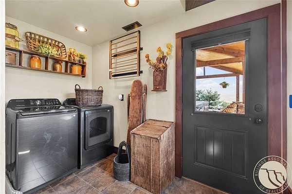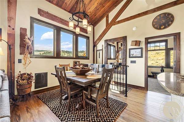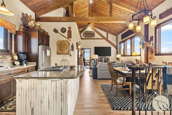 Escape to your modern rustic dream retreat in Luther, Montana! Nestled on 19.88 acres of pristine land, this immaculately maintained 2-bed, 2-bath home offers peace, quiet, and breathtaking mountain views. Soaring vaulted ceilings, post and beam architecture, and expansive windows bring the outdoors in. The attached, oversized garage (1400 approx. sqft) space, could be easily converted into additional livings space if desired. Enjoy wildlife sightings, year-round access, and a stunning firepit perfect for starry nights. The property boasts 8+ garage spaces and a massive shop with its own bathroom-ideal for hobbies or storage. A rare blend of rustic charm and modern comfort awaits in this Montana gem. (Buyer to verify all measurements.)