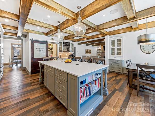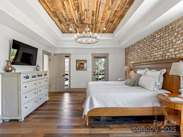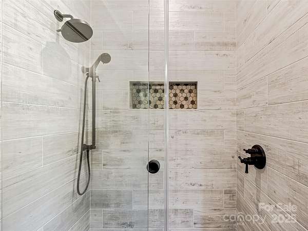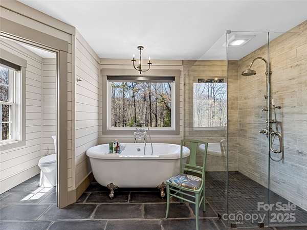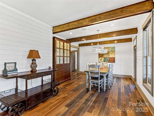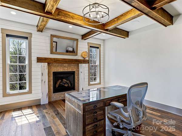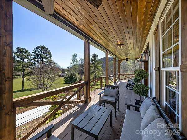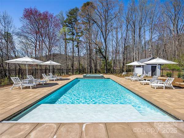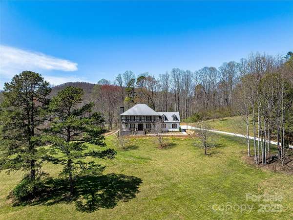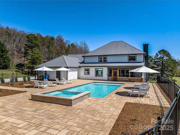 Completely transformed modern farmhouse on 5.5 acres w/ mountain views! This 4BR/3.5BA home features premium designer finishes, top-tier upgrades & $100K+ in smart tech: whole-home audio, Lutron lighting, power shades, security cameras on 4 sides & more. Interior highlights include engineered hardwoods, shiplap, coffered ceilings, soundproof office & living room each w/ gas fireplace plus gourmet kitchen w/ 10' quartzite island, workstation sink & Thermador appliances, including dual-fuel range w/ warming drawer, convection oven. Primary suite has raised ceiling, brick accent wall, & spa-like bath w/ chromotherapy clawfoot tub, heated tile floor, walk-in closet. Backyard oasis touts 18'x38' heated saltwater gunite pool w/ hot tub, swim jet, Baja shelf, auto cover, smart lighting. Screened porch w/ outdoor TV, EV-ready garage, RV pad w/ 50-amp plug, fully conditioned crawlspace. Turnkey luxury experience convenient to Asheville & Hendersonville amenities. Only 9 minutes to the Asheville airport.