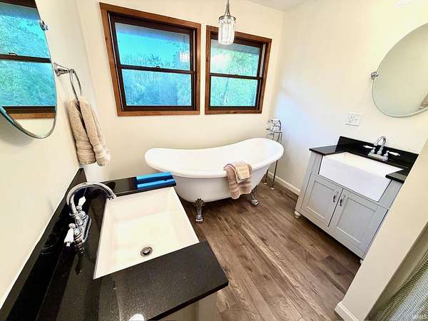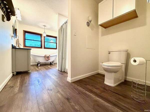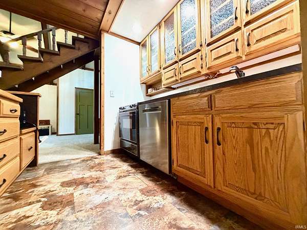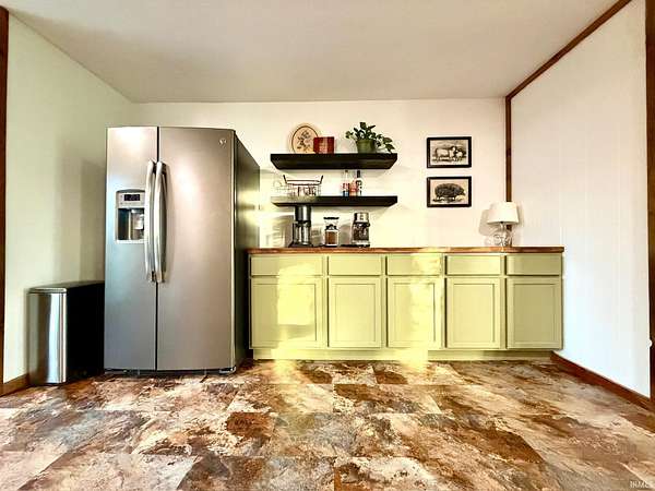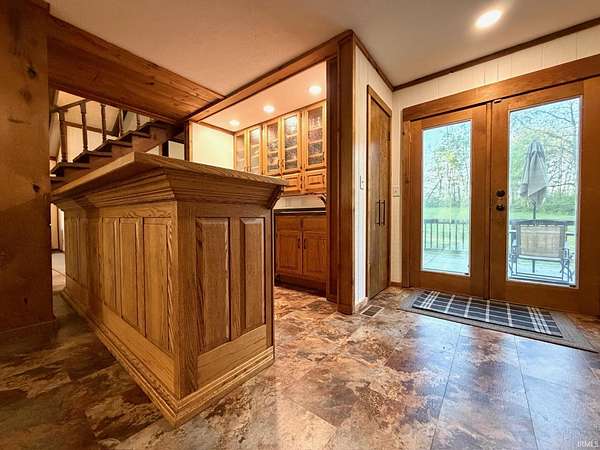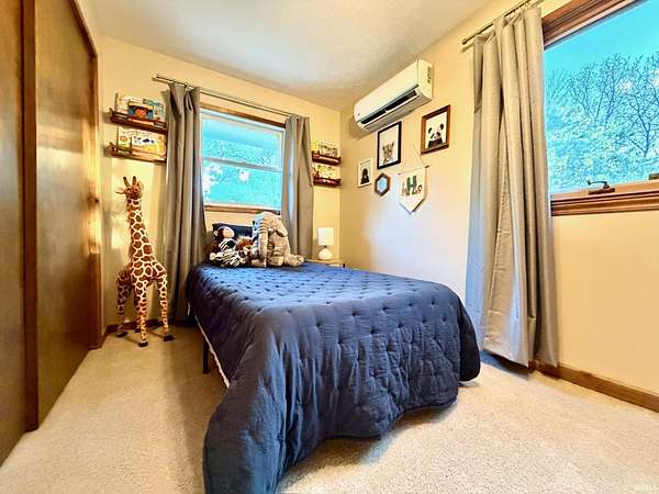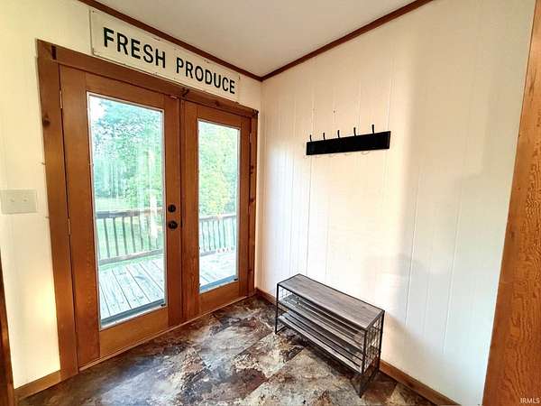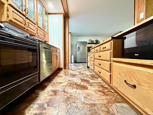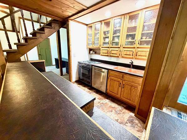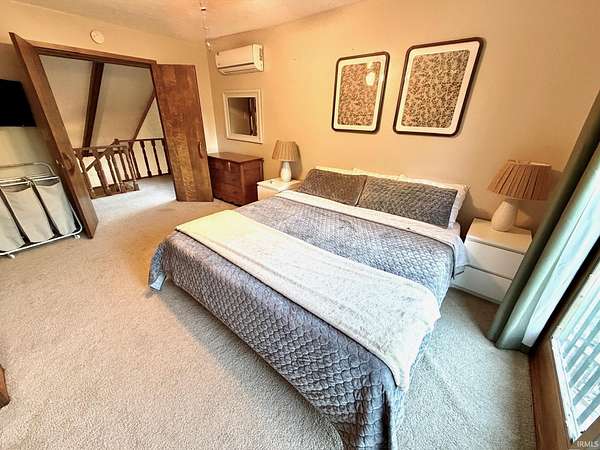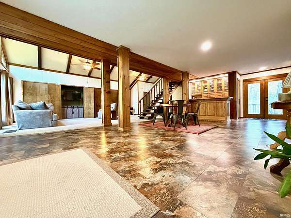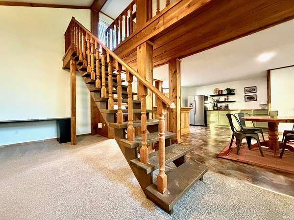 Peaceful living on 4.2 beautifully maintained acres, this inviting 2 bedroom, 1.5 bath home offers privacy and quiet. Step through the French doors into a warm, open concept living space filled with natural light, featuring exposed beams, a two story living area with floor to ceiling windows, and a spacious dining area perfect for gathering. The kitchen offers a hammered copper sink, island with breakfast bar seating, a coffee bar alcove, and two pantries, with rear doors leading to a deck ideal for relaxing or entertaining. Upstairs you will find both bedrooms along with a beautifully updated bathroom featuring dual vanities and a clawfoot tub, while a convenient half bath is located on the main level. The unfinished walk out basement provides excellent storage and garage space, with potential to create additional finished living area if desired. Outside, enjoy the wraparound deck, fire pit, large Amish built shed, and custom chicken coop, all surrounded by peaceful acreage. Notable updates include updated electrical with new panel and breakers (2022), mini split systems in bedrooms (2023), built in kitchen cabinetry and coffee bar (2022), new dishwasher (2023), fresh interior paint in bathrooms (2026), and multiple outdoor improvements.