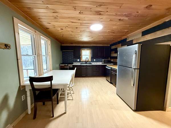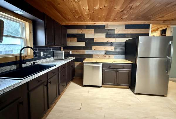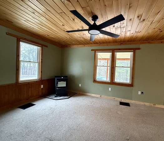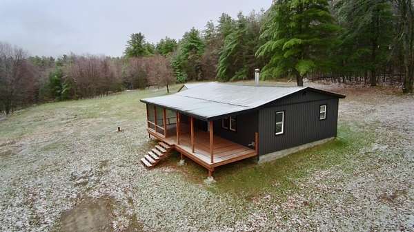 Cozy 2-bedroom, 1-bath ranch cabin on 2 acres! Features an open-concept kitchen and living room, plus an office/bonus room. Enjoy the brand-new front porch with screened and open areas, along with a new metal roof and siding. Full basement with wood/oil furnace combo and a 1-car garage complete this move-in-ready property.