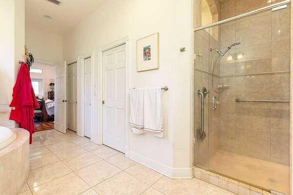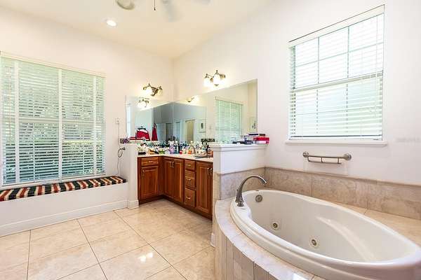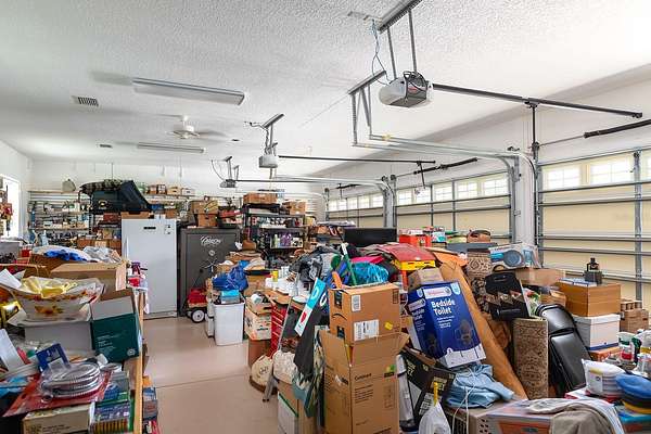 This home is equipped with PGT insulated hurricane windows, two A/C units, and both gas and electric water heaters. Additional conveniences include a full alarm system, irrigation system, and a three-car garage with heating, cooling, built-in shelving, and worktops.