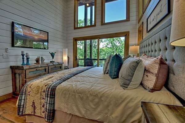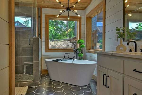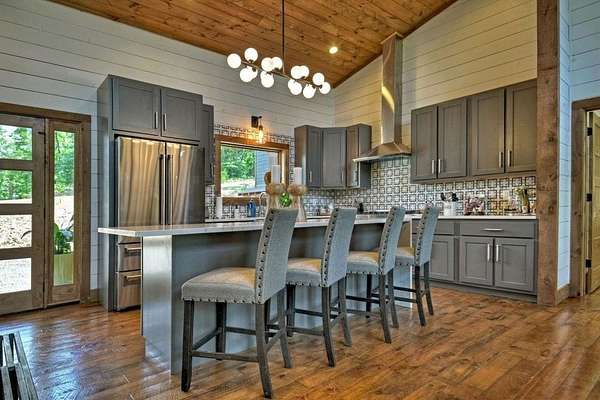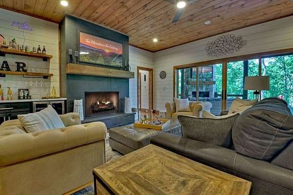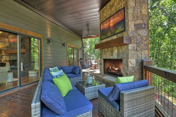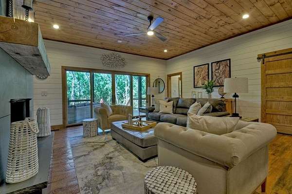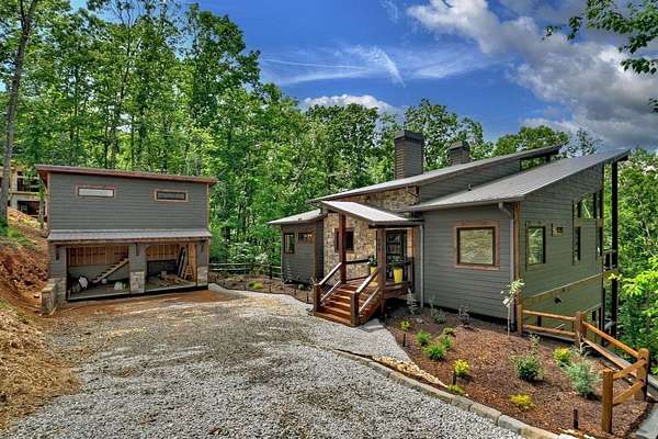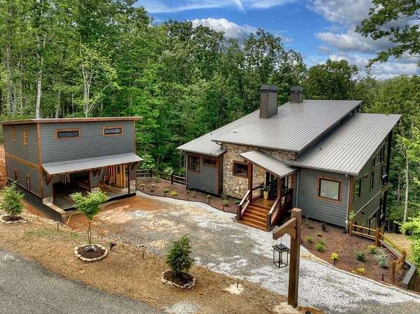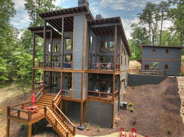 Elevated modern rustic livingG Whether you're looking to purchase your weekend getaway or your full-time forever home, this ultimate mountaintop masterpiece is sure to make a statement! Offering the best of mountain living, this ultra-trendy contemporary style retreat is just minutes from downtown Blue Ridge located in the heart of the Aska Adventure Area. The highlight desired Deer Crest community overlooks overlooks stunning mountain views and has all of North Georgia's amenities at your back door, so-to-speak - Lake Blue Ridge, the Toccoa River, dining, shopping, hiking/biking, and more! This dreamer offers a gorgeous blend of finishes, soaring ceilings, an abundance of glass, 4 en-suites - 2 on each level, 2 fireplaces indoors with one on each level, and two fireplaces outdoors - one on each deck. It even includes a two-car detached garage! There's room for everyone! This home boasts clean and crisp living space with an open concept and amazing custom finishes throughout. Ahhh the modern mountain life! Professionally staged by North Georgia Home Staging. Furnishings & decor may be purchased separately via a Bill of Sale.