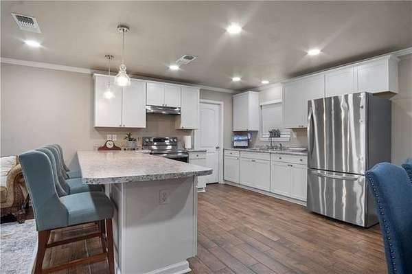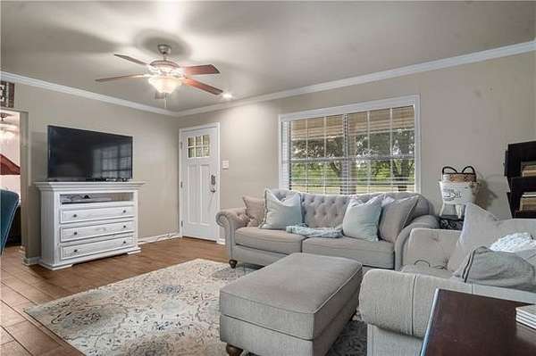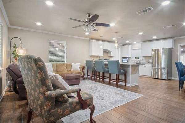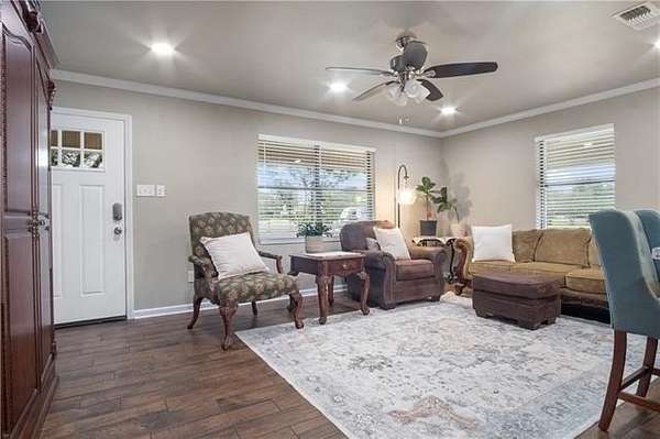 This charming 3 bedroom, 1.5 bath home offers the blend of space, comfort, and versatility. Inside, you'll find a warm and inviting layout with an extra room that can serve as an entertainment area, playroom, or optional fourth bedroom. The kitchen has plenty of storage space with a butler style pantry. Step outside to enjoy the oversized back patio shaded by beautiful oak trees, an ideal spot for relaxing evenings or weekend gatherings.