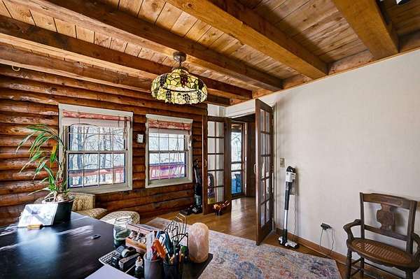 590 Fox Road - Factoryville, PA | Wyoming County An incredible opportunity to bid on a truly breathtaking log estate nestled on 24+/- scenic acres in the beautiful countryside of Wyoming County, Pennsylvania near Factoryville, Pennsylvania. This remarkable property offers the perfect combination of rustic elegance, privacy, and natural beauty, creating a peaceful retreat while still being conveniently located to nearby towns and amenities. From the moment you arrive, you'll be captivated by the handcrafted log construction, soaring beams, and warm rustic charm that define this exceptional home. Inside, the residence features expansive living spaces, beautiful wood finishes, and three fireplaces that create a warm and inviting atmosphere throughout the home. Step outside and enjoy your own private nature retreat, complete with wooded acreage, walking trails, and tranquil water features. Whether relaxing on the deck, exploring the land, or entertaining guests, this property offers a lifestyle that is truly one of a kind. Property Highlights 4 Bedrooms | 2.5 Bathrooms 24+/- Acres of Scenic Pennsylvania Countryside Three Fireplaces Private Pond & Stream Walking Trails Throughout the Property Beautiful Mountain & Woodland Views Barn and Additional Outdoor Structures Peaceful, Private Country Setting
