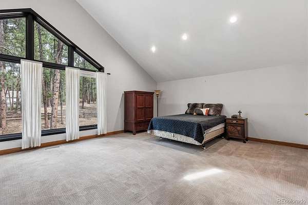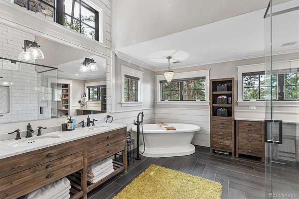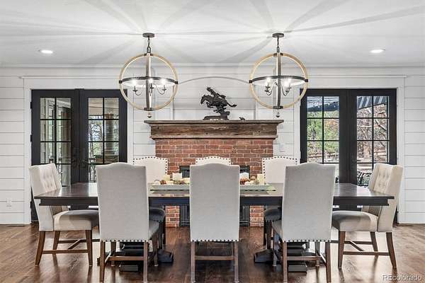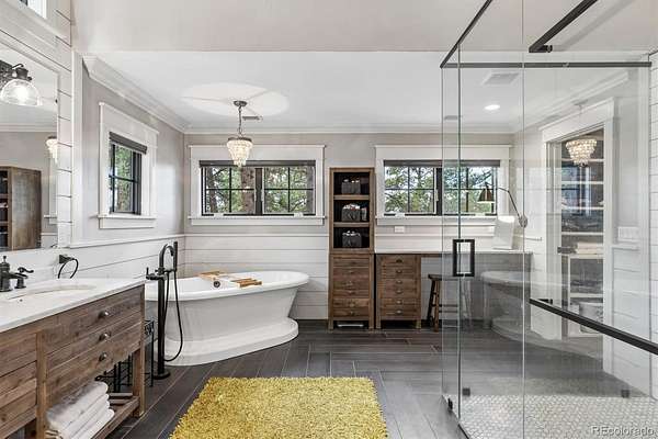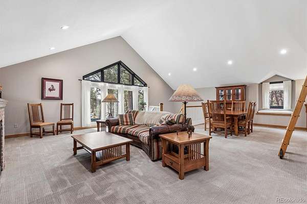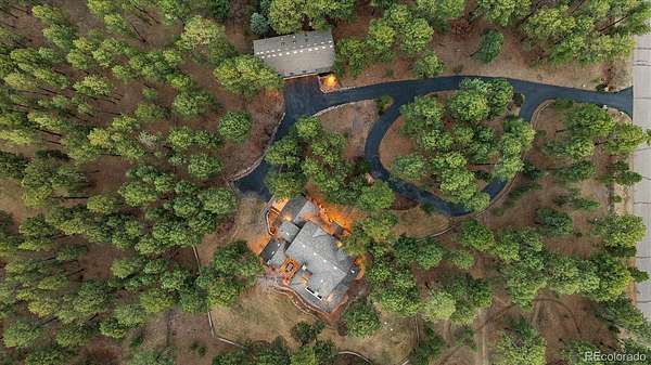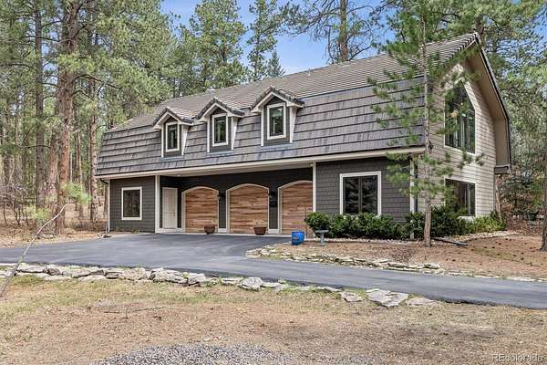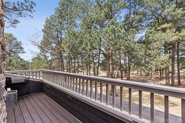 Welcome to 590 Grey Squirrel Way, a private, gated luxury retreat in the highly sought-after Deerfield community of Franktown, Colorado where life unfolds among towering pine trees and every day feels like a peaceful escape into nature. Set behind a security gate and fully perimeter fenced, this extraordinary property is nestled in a serene forest setting, offering unmatched privacy, usable acreage, and the perfect blend of refined living and Colorado’s natural beauty. Designed for seamless indoor-outdoor living, the home invites you to enjoy the landscape from nearly every angle, whether you're stepping out from multiple rooms onto expansive outdoor living spaces or unwinding by one of six fireplaces. Thoughtfully designed with timeless finishes and everyday conveniences, all three upstairs bedrooms in the main residence are en-suites, including a luxurious primary suite complete with its own fireplace, private balcony, and a tranquil five-piece bath with an oversized shower. A fourth bedroom and ¾ bath in the finished basement offering additional flexibility for guests or extended living. Car enthusiasts and hobbyists will appreciate five garage spaces, including a two car attached garage with a newly coated floor and a three car oversized garage within the carriage house. This versatile space also includes a dedicated workshop, private office, and additional half bath, ideal for a homebased business or creative pursuits. Upstairs you'll find approximately 1,891 square feet of finished loft-style living space with two bedrooms and one bathroom, perfect for guests quarters, multi-generational living or a private retreat. Equestrian-ready, the property features a 2-stall barn with a feed room and automatic waterer. Adjudicated water rights add exceptional value. 590 Grey Squirrel Way offers a rare opportunity to live surrounded by nature with modern conveniences already in place—Colorado luxury living redefined: private, peaceful, and unforgettable.