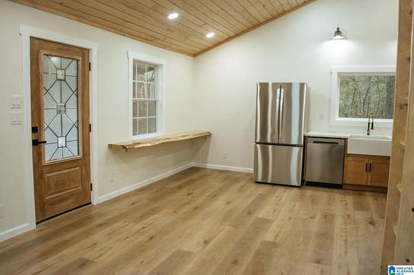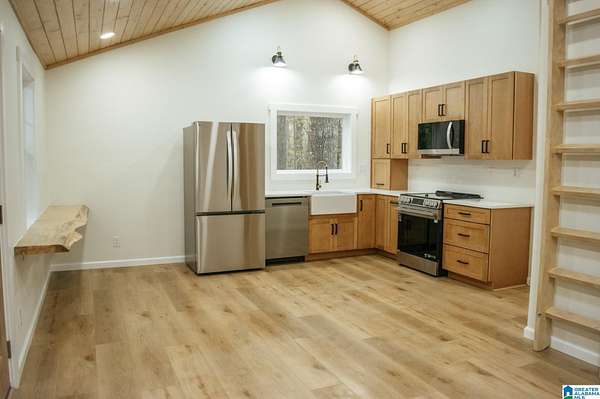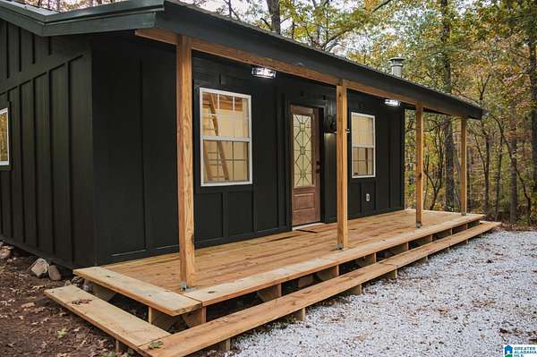 Beautifully renovated cabin on 15 acres! This home offers one bedroom, a full bathroom, open concept living and kitchen area, and loft. Built in 2007 and completely remodeled in 2025. From a new roof, hardi board siding, electrical, plumbing, complete new kitchen and appliances, flooring, etc. nothing was left untouched! No restrictions for this 15 acre property featuring two spring fed streams and mature hardwoods. This would be a perfect VRBO or getaway, located a short distance from Cheaha State Park, 10 minutes to Lineville, and 25 minutes to Oxford. Come and sit on the porch and admire the nature here!