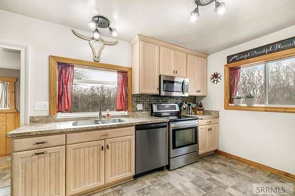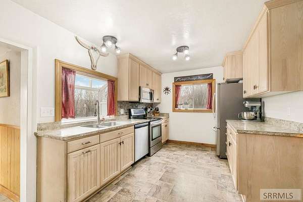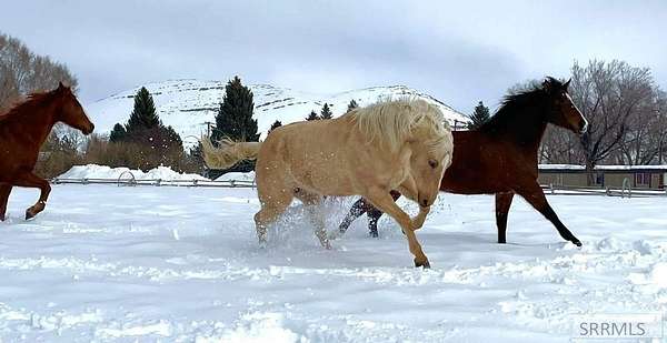 This property is built for the buyer who values function, and self-sufficiency. Anchored by Big Lost River water rights (19.6 acre-feet), The water systems are thoughtfully divided: pasture risers run off the private well, while three hydrants are connected to city water for consistent reliability. The equestrian infrastructure is ready for immediate use. The hay barn is sized to hold (24) 3x4x8 bales and is equipped with lights and power. Your tack room comes fully powered with saddle racks already installed, and a functional hot walker conveys with the sale. With ample pasture and extensive trailer parking, this property handles the logistics of horse ownership with ease. This is a haven for projects. The insulated small shop features wood floors, A/C, and power. A separate woodshop/garage offers built-in benches, a wood stove, and an automatic opener. For equipment, there is a dedicated tractor shed and a separate fencing shed for storage. The 3-bedroom, 2-bath residence is efficient and comfortable. The main floor features a dining area flowing into the living room, warmed by a computer-controlled pellet stove installed in 2022. The large primary suite includes a full private bath. 2 bedrooms with durable laminate flooring are located upstairs.