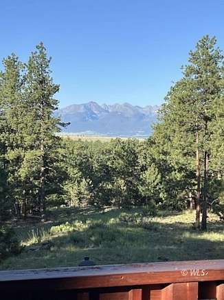 This house has a Lot of room for a large family, and or extra room for guests. With 5 bedrooms and 3 bathroom and laid out well, there is space and privacy galore. You could have a private office, or a crafts room and still have plenty of space for others. There is an extra large primary bedroom with private bathroom and exterior exit to a deck, you could come and go and no one would know. With an open concept kitchen, living , dining, and vaulted ceilings throughout and. seven, yes 7 sliding glass doors. There is so much natural light in here being southern facing, that you will hardly ever turn on a light.. With an EXTRA LARGE deck and half of it covered, there is that much more useable space. And speaking of Space, on the ground level under the addition is a 1000 square foot unfinished room which has been used as a workshop and storage for all the toys that might not fit in the two car Attached garage. On 7 acres and with no HOA, in a good neighborhood and very close to a year round county maintained road, access is simple. The view of The Sangre de Cristo's seems so close you feel like you could touch them.