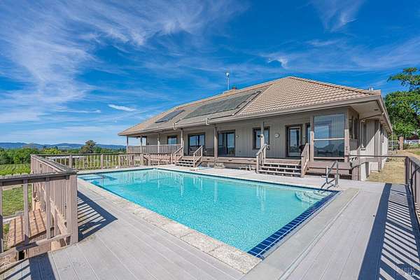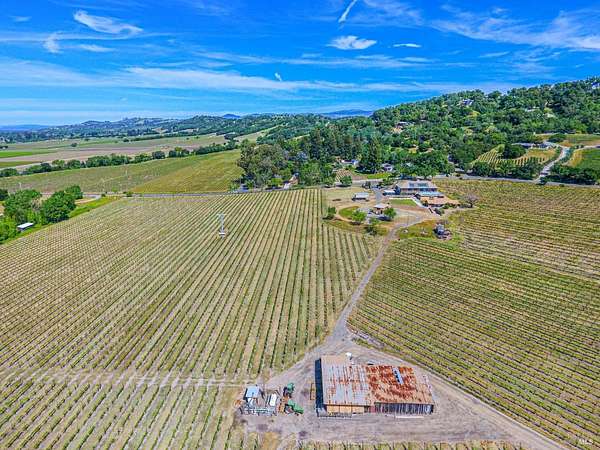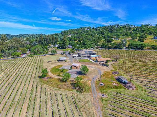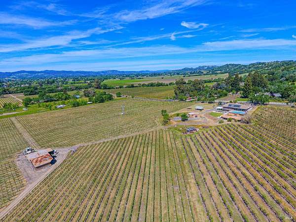 Welcome to the Shiloh Vineyard estate. This property presents a rare opportunity to reimagine a spacious 4,178+/-sf main structure on over 7 acres of rolling meadow with breathtaking sunset views overlooking beautiful vineyards. The home is known to be very well built with signature engineering elements like low voltage switching, spray in wall insulation, heated floors in garage conversion, the use of pool water to cool the home, the design of the above ground pool has been extremely effective in preventing plaster cracking, and more. There are also two additional assessory structures on the property. One is a tunnel dehydrator used back in the day for drying prunes totaling about 737+/-sf and a 1,200+/-sf shed with bathroom. Property also has ample on-site water storage. Nestled in Sonoma County's world-class wine country, the property offers a tranquil setting, natural beauty, and lots of long-term potential. The on-site vines are professionally managed under an agricultural lease, blending lifestyle and agricultural benefits seamlessly. The estate includes a main residence ready for your vision to come to life with renovations already underway like the kitchen being demoed, acoustic ceilings scraped, some flooring and sheetrock removed. There is also an outbuilding offering a blank slate to create a separate space, a rustic barn, and ample room for expansion perfect for contractors, investors, or buyers looking to craft a custom wine country retreat. Conveniently located just minutes from Windsor and Santa Rosa, the property provides easy access to Highway 101, top-rated schools, shopping, dining, and daily amenities. Santa Rosa serves as the gateway to Sonoma County's celebrated wine regions and vibrant downtown, with restaurants, cultural attractions, and local charm nearby. This is a rare chance to transform a vineyard-view estate in a highly desirable location offering rural tranquility with the convenience of town nearby, ideal for a private estate, investment project, or dream wine country home.