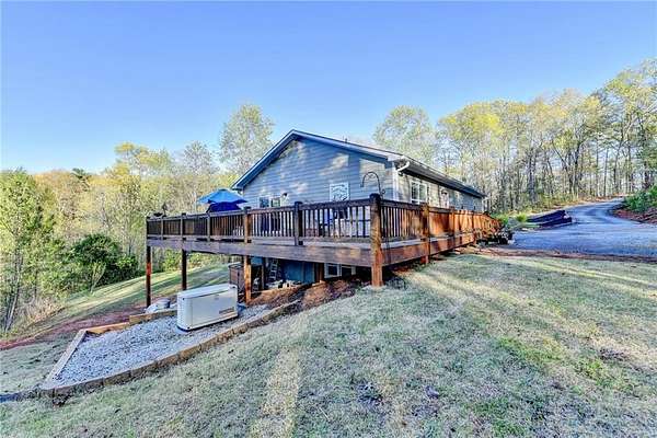Multi-Generational Living + Income Potential on 6+ Buildable Acres - Sub-dividable! Rare multi-generational home on 6+/- buildable acres with the option to subdivide and add another home. Both levels offer private driveways and separate entrances, creating flexibility for in-laws, rental income, guests, teens, or a private apartment. Interior stairs allow the home to function as one residence if desired. Upper level features 3BR/2BA with an open kitchen/living/dining layout, mountain views, large walk-in closet, and a wrap-around deck off the kitchen perfect for gatherings. Lower level offers 2BR/2BA, full kitchen, living/dining area, separate laundry, and direct outdoor access with space ideal for gardening or pets. Both levels have open concept layouts, full kitchens, and laundry areas. Home is move-in ready with a fresh, neutral color palette and pride of ownership throughout. Property is partially fenced and suitable for horses, goats, chickens, and hobby farming. Land is buildable with space for a second homesite while maintaining privacy. Located approx. 20 minutes from the Outlet Malls on GA-400, offering a balance of privacy, convenience, and future potential.