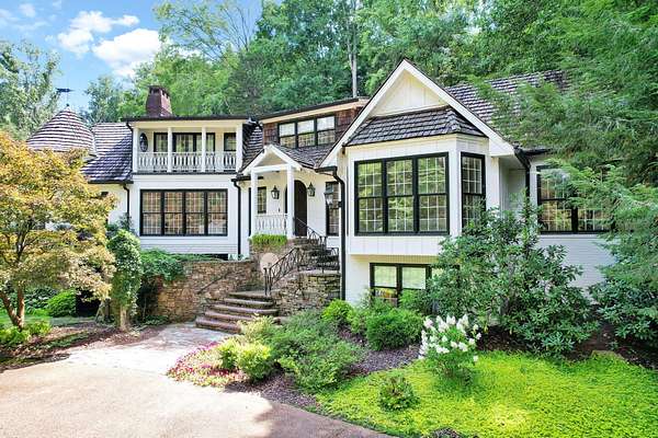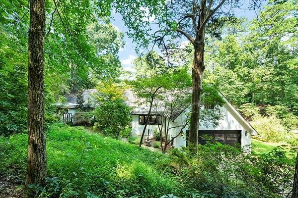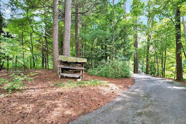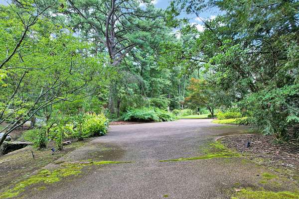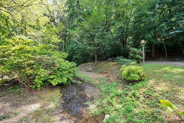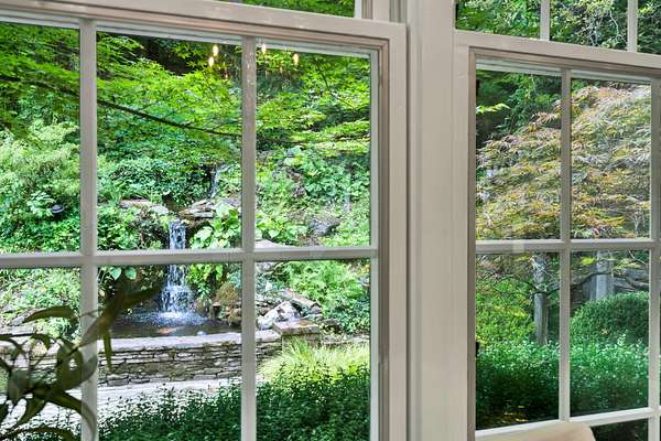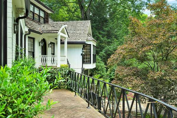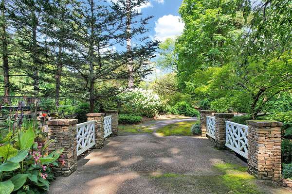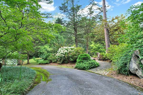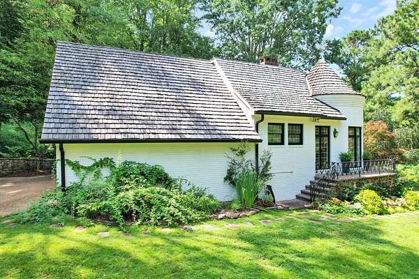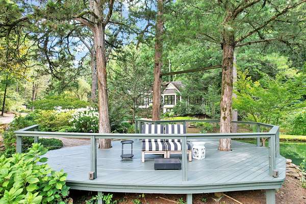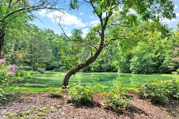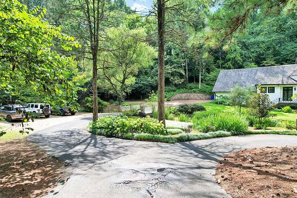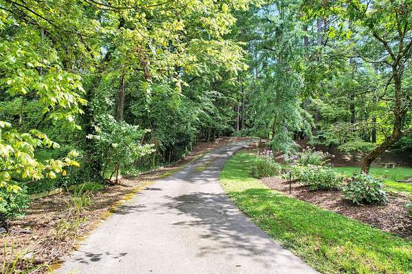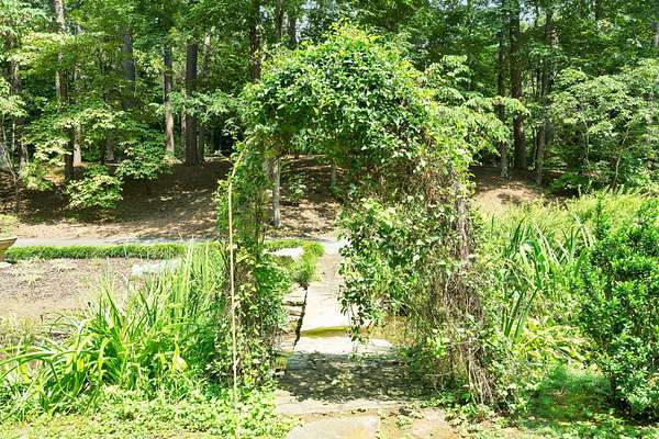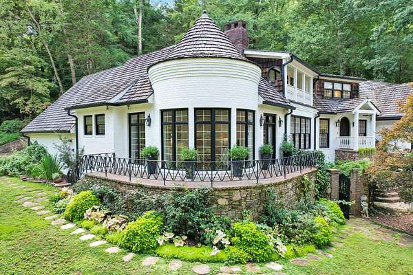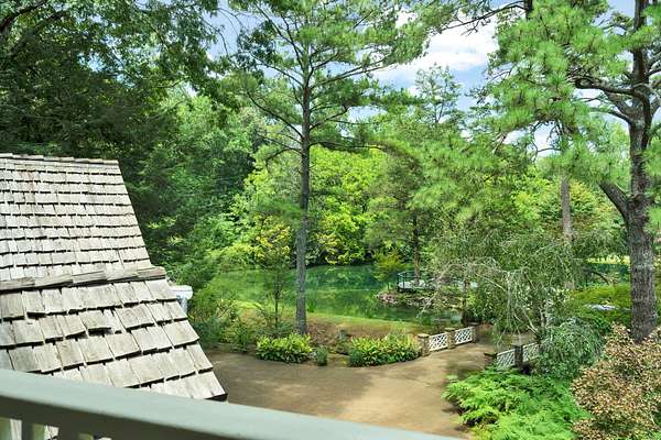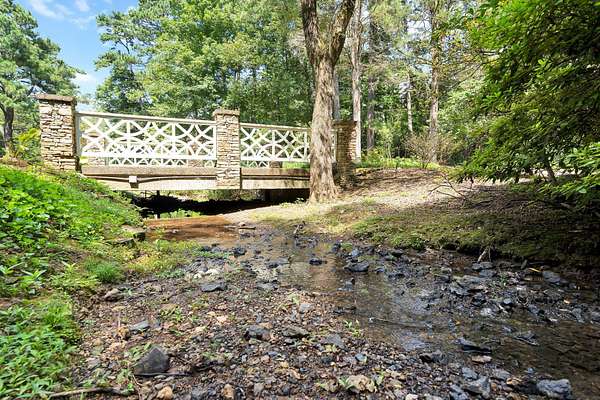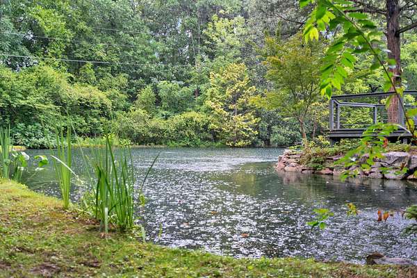 Timeless Elegance Meets Natural Beauty - Custom Estate on 5.36 Acres Designed by esteemed architect Norman Askins, this one-of-a-kind 4-bedroom, 6-bathroom estate offers 6,400 square feet of refined living space surrounded by lush, professionally landscaped grounds. Tucked away on 5.36 acres, this home blends Southern charm with architectural excellence, all framed by mature hardwoods, vibrant Japanese maples, and views that feel like your own private botanical garden. Proudly cherished by only two owners since its creation, the property has been meticulously maintained, ensuring its architectural beauty and character remain intact. From the moment you arrive, you're greeted by a storybook exterior featuring a wood shake roof, custom stone steps, and a beautifully manicured courtyard that invites relaxation and conversation. Inside, thoughtful craftsmanship abounds-coffered ceilings, granite countertops, marble and natural slab finishes in the bathrooms, and a sun-filled turret-style sunroom with all new windows. The kitchen is designed for hosting, complete with all new appliances including double ovens. Retreat to the billiard room complete with a black walnut wet bar, or unwind in the primary suite offering dual spa-like bathrooms-one includes a soaking tub, walk in shower, and heated floors for her while the other bathroom has a luxurious walk-in shower-plus the primary suite has motorized blackout blinds for restful nights. Step outdoors and immerse yourself in a true oasis. Enjoy outdoor lighting, a cascading waterfall, koi pond with fountain, garden shed, chicken coop, and two scenic, year-round creeks that flow around a private half-acre well stocked pond filled with trout and bass. Entertain on the peaceful pondside deck or relax to the sound of moving water. Whether you're entertaining guests or enjoying a quiet sunset by the water, this home offers a lifestyle of unmatched peace, luxury, and natural beauty.