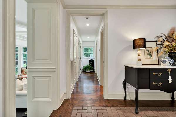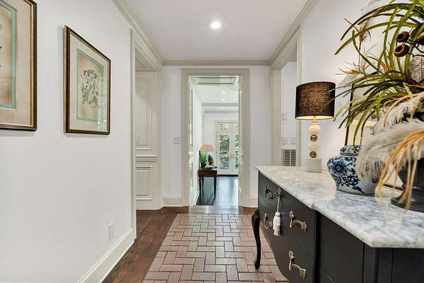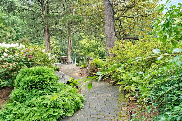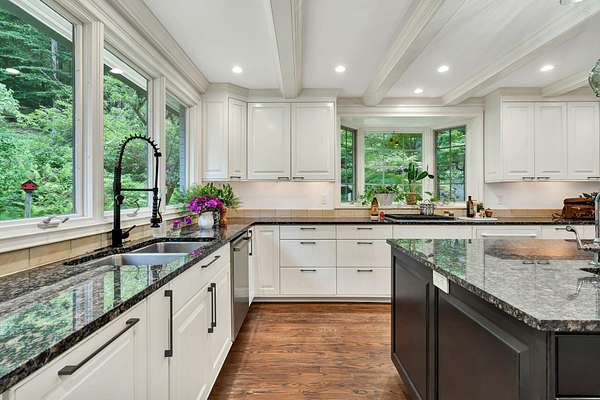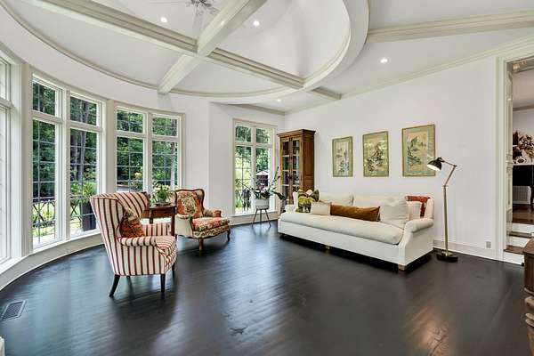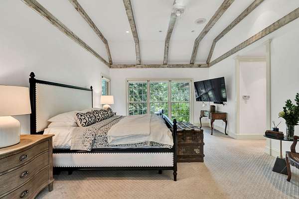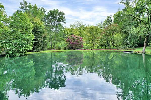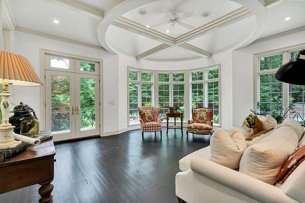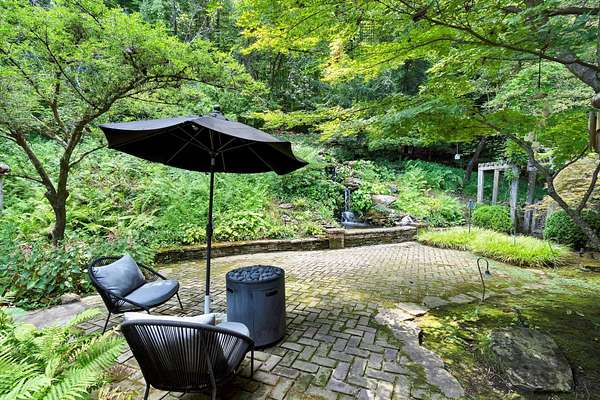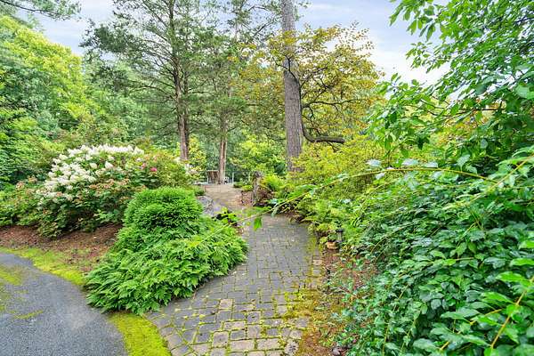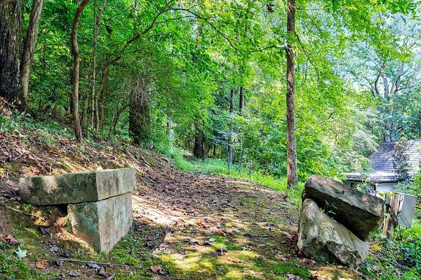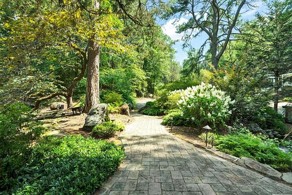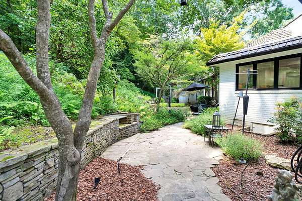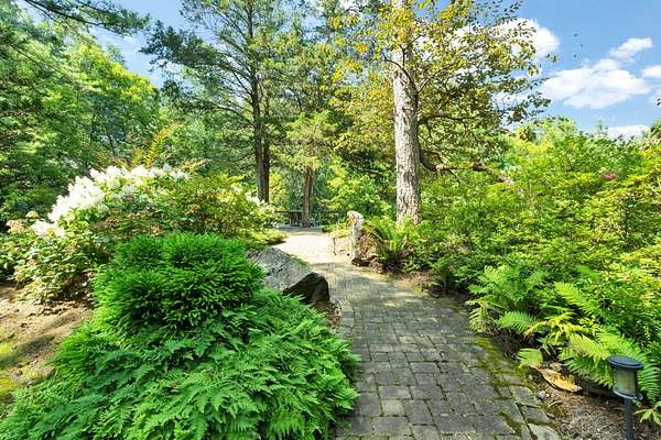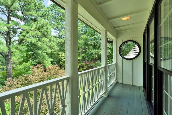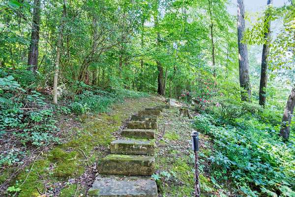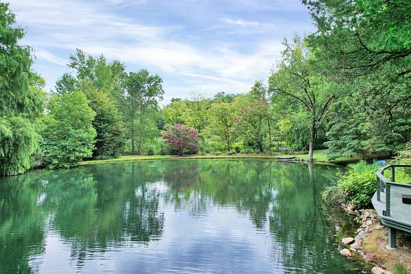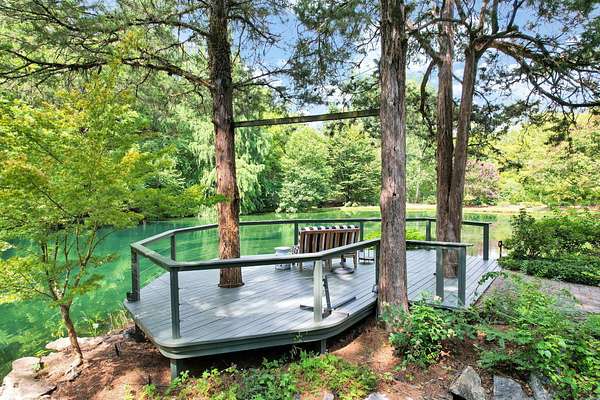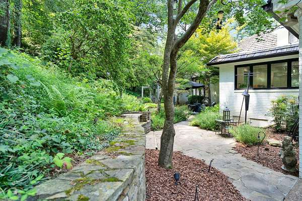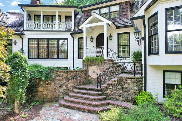 Timeless Elegance Meets Natural Beauty - Custom Estate on 5.36 Acres Designed by esteemed architect Norman Askins, this one-of-a-kind 4-bedroom, 6-bathroom estate offers 6,400 square feet of refined living space surrounded by lush, professionally landscaped grounds. Tucked away on 5.36 acres, this home blends Southern charm with architectural excellence, all framed by mature hardwoods, vibrant Japanese maples, and views that feel like your own private botanical garden. Proudly cherished by only two owners since its creation, the property has been meticulously maintained, ensuring its architectural beauty and character remain intact. From the moment you arrive, you're greeted by a storybook exterior featuring a wood shake roof, custom stone steps, and a beautifully manicured courtyard that invites relaxation and conversation. Inside, thoughtful craftsmanship abounds-coffered ceilings, granite countertops, marble and natural slab finishes in the bathrooms, and a sun-filled turret-style sunroom with all new windows. The kitchen is designed for hosting, complete with all new appliances including double ovens. Retreat to the billiard room complete with a black walnut wet bar, or unwind in the primary suite offering dual spa-like bathrooms-one includes a soaking tub, walk in shower, and heated floors for her while the other bathroom has a luxurious walk-in shower-plus the primary suite has motorized blackout blinds for restful nights. Step outdoors and immerse yourself in a true oasis. Enjoy outdoor lighting, a cascading waterfall, koi pond with fountain, garden shed, chicken coop, and two scenic, year-round creeks that flow around a private half-acre well stocked pond filled with trout and bass. Entertain on the peaceful pondside deck or relax to the sound of moving water. Whether you're entertaining guests or enjoying a quiet sunset by the water, this home offers a lifestyle of unmatched peace, luxury, and natural beauty.