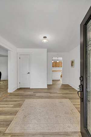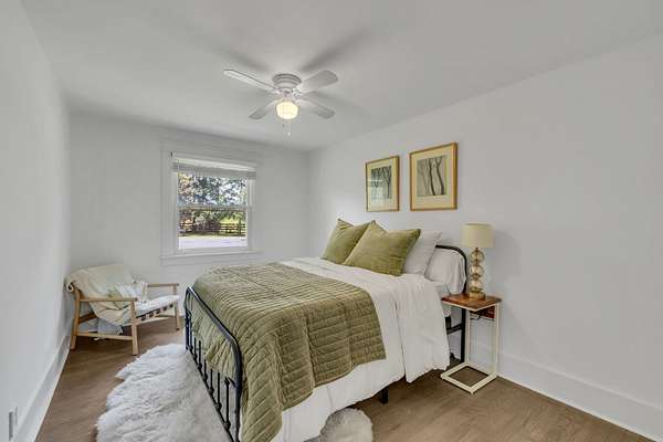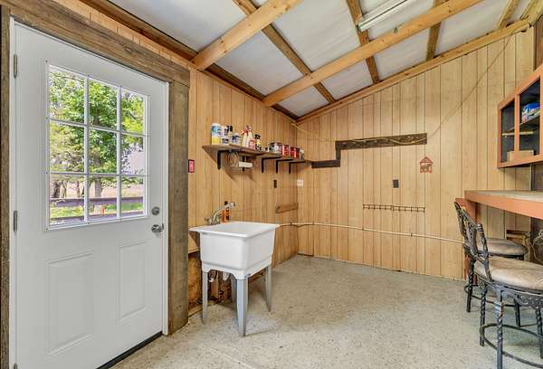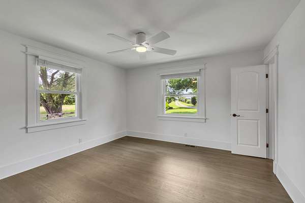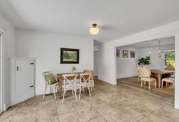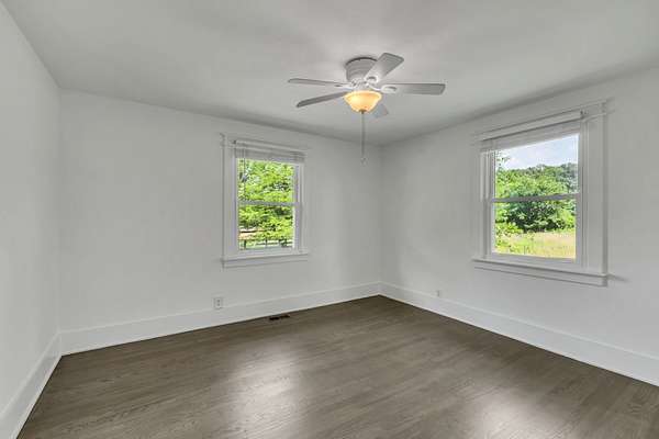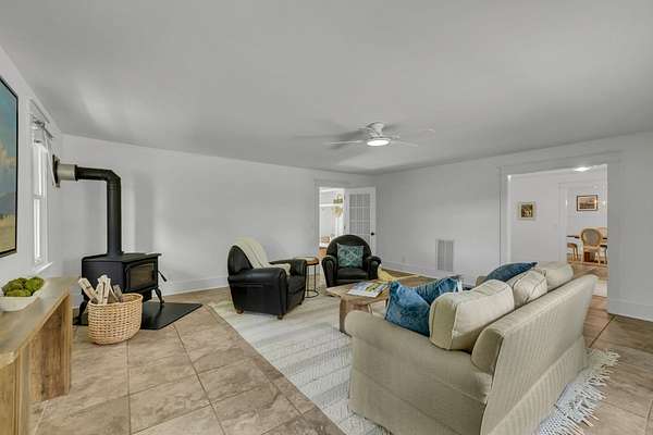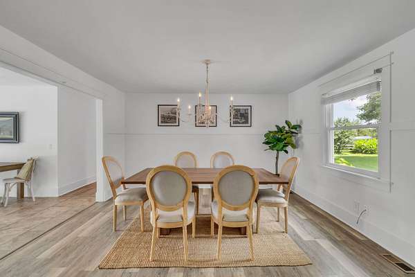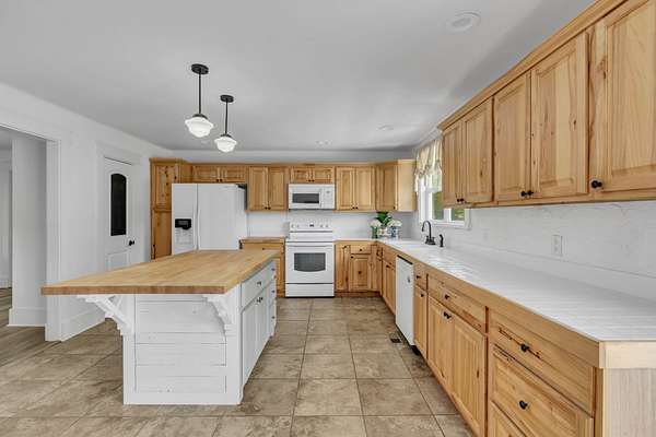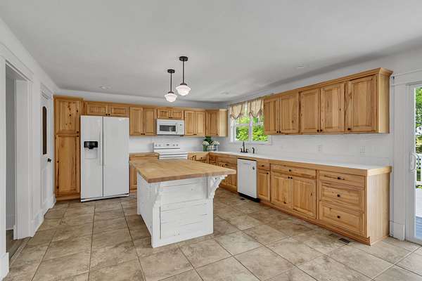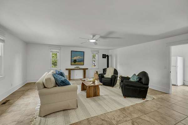 The updated 4-bedroom, 2.5-bath farmhouse blends country charm with modern comfort. Step into the open eat-in kitchen featuring a large island, walk-in pantry, and separate dining room--perfect for relaxed meals after a day on the farm. The inviting living room includes a black coal stove and plenty of space to unwind. A mudroom with an attached laundry area provides a place to kick off your boots when you come in from the barn.